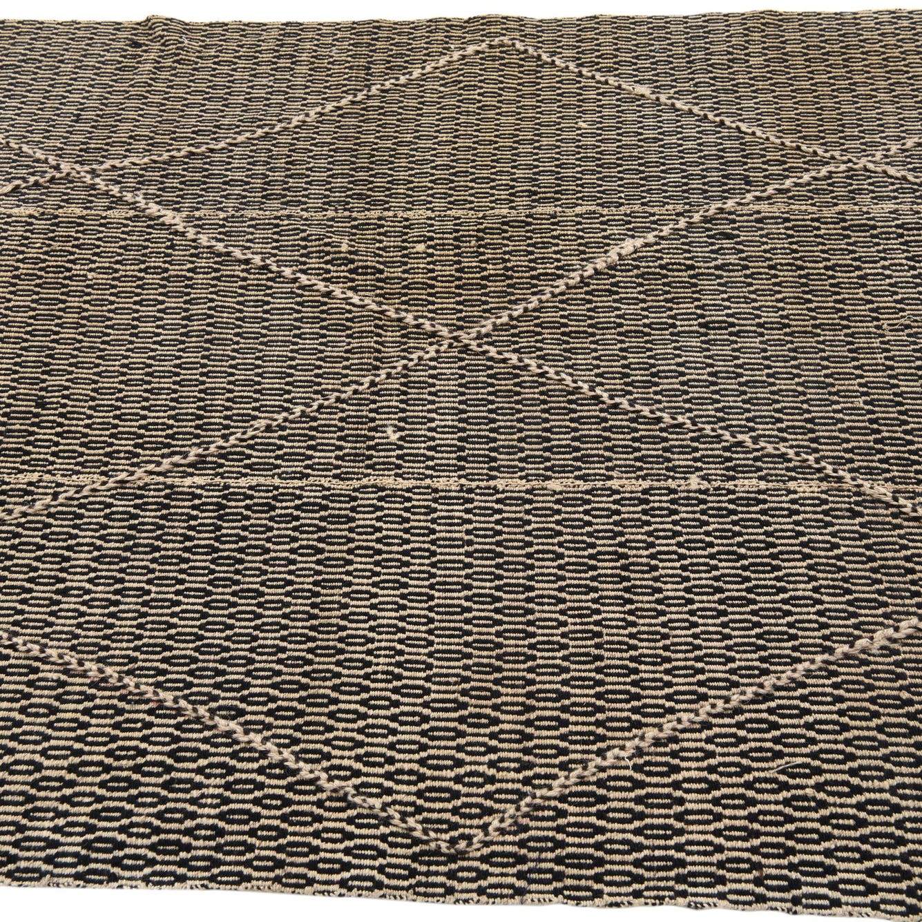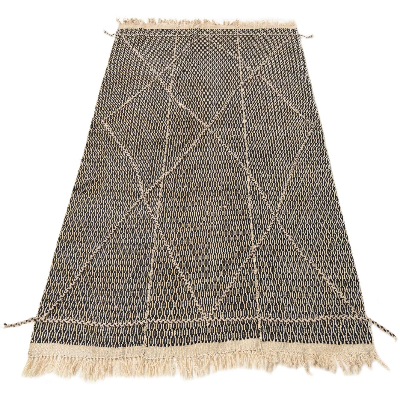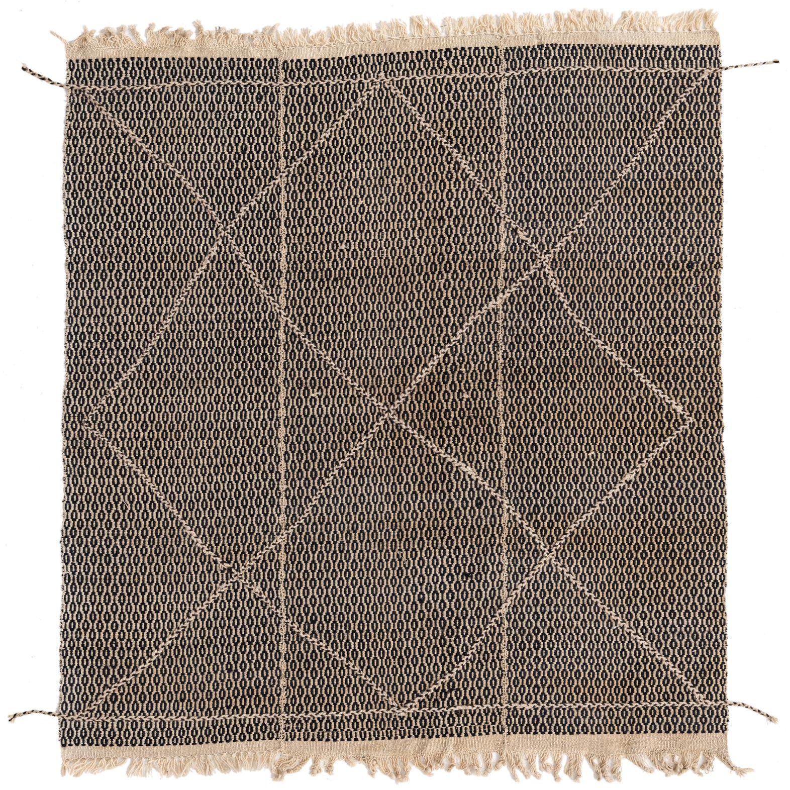 Primary color is Beige. Colors in this rug include: Beige, Black.