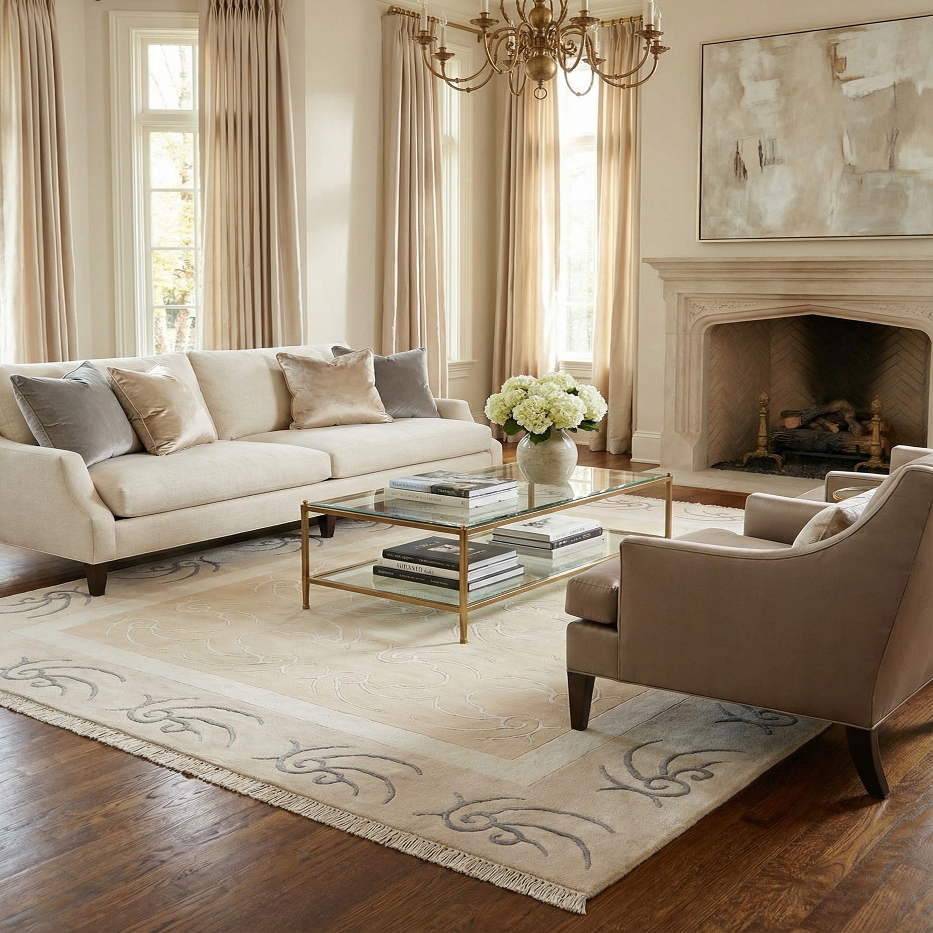 Primary color is Beige. Colors in this rug include: Beige, Gray, Silver, Ivory.