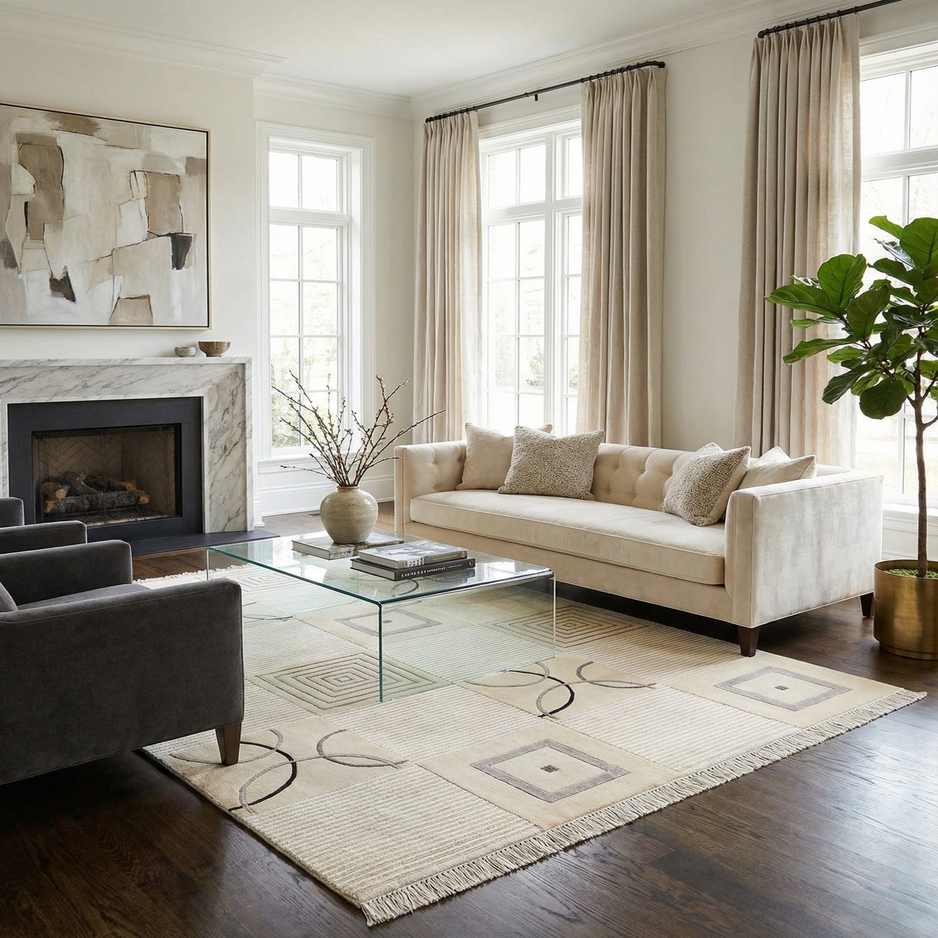 This Darya rug would be well-suited to an array of decor scenarios, from a minimalist modern living room where the clean lines can anchor the space to a transitional home office where its sophisticated colors would lend a sense of calm and order. Additionally, it could integrate seamlessly into a Scandinavian-inspired setting, where its subtlety would harmonize with the design's emphasis on simplicity and functionality.