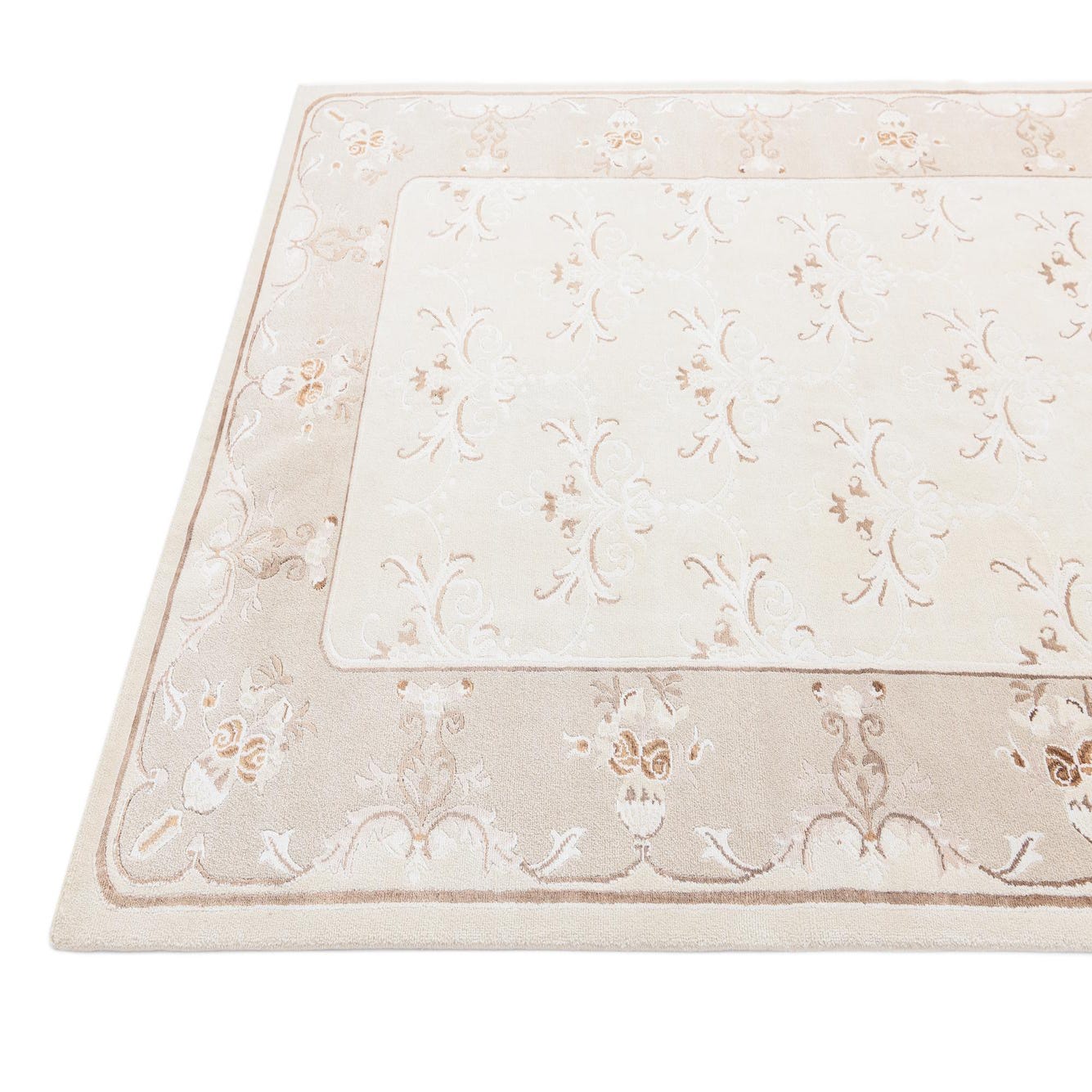 Ideal for traditional and transitional decor, this rug can enhance a living room, dining area, or bedroom with its understated yet sophisticated palette and design. It can serve as an anchor for furniture groupings or as a stand-alone piece in a minimalist space where its intricate pattern can be a focal point. It can perfectly complement a neutral color scheme or serve as a balancing element in a room with bolder colors and textures.