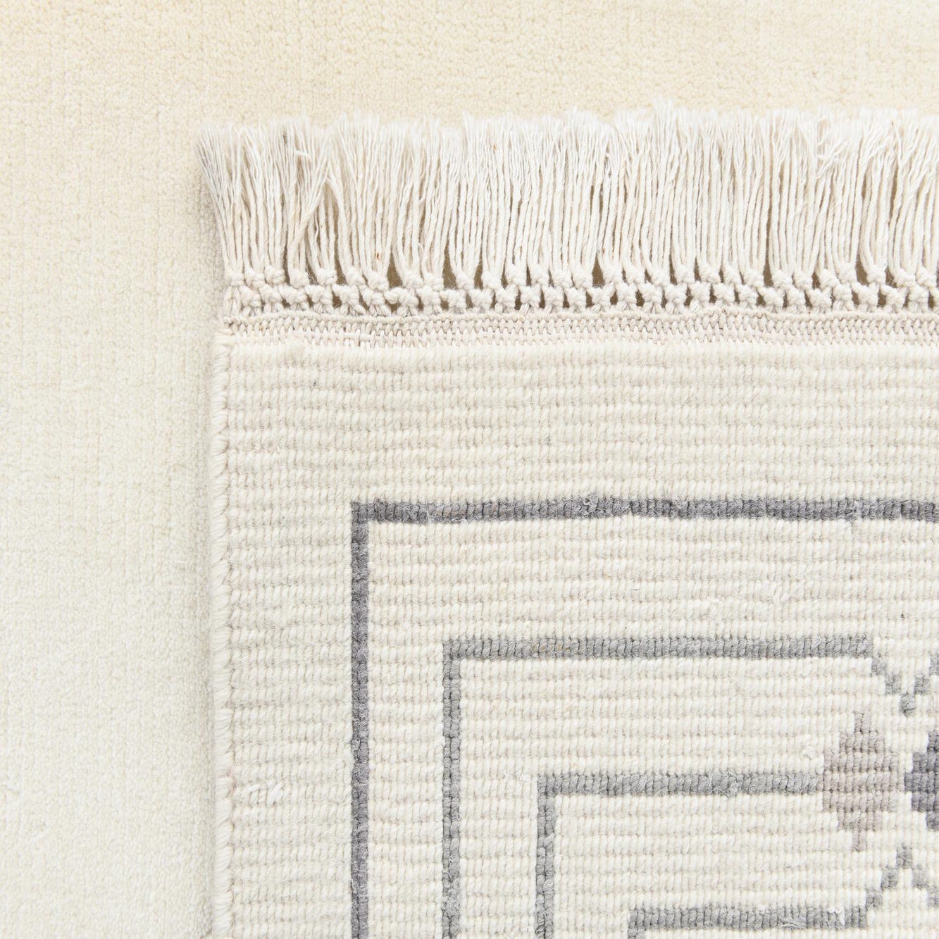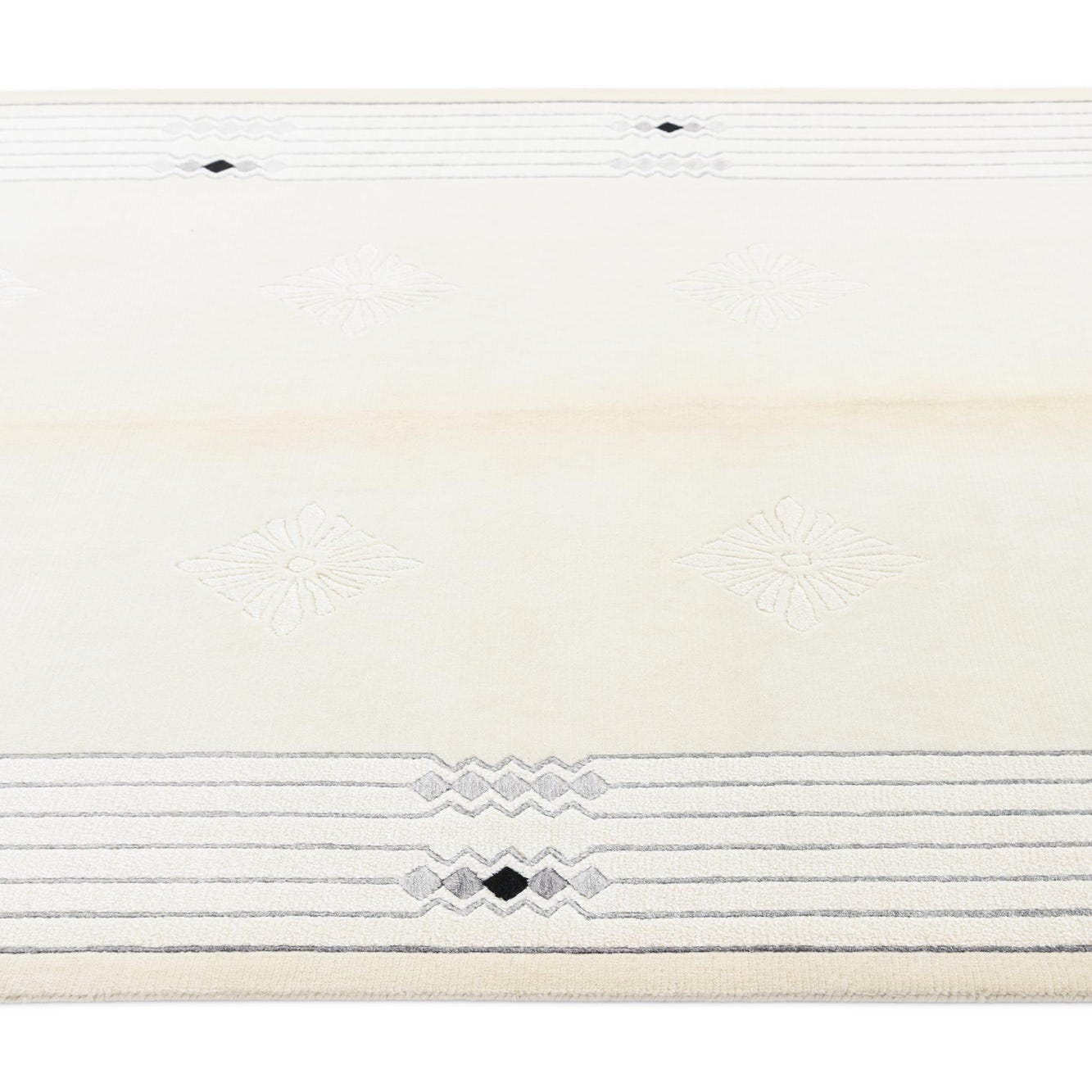 Primary color is Beige. Colors in this rug include: Beige, Gray, Black, Silver.