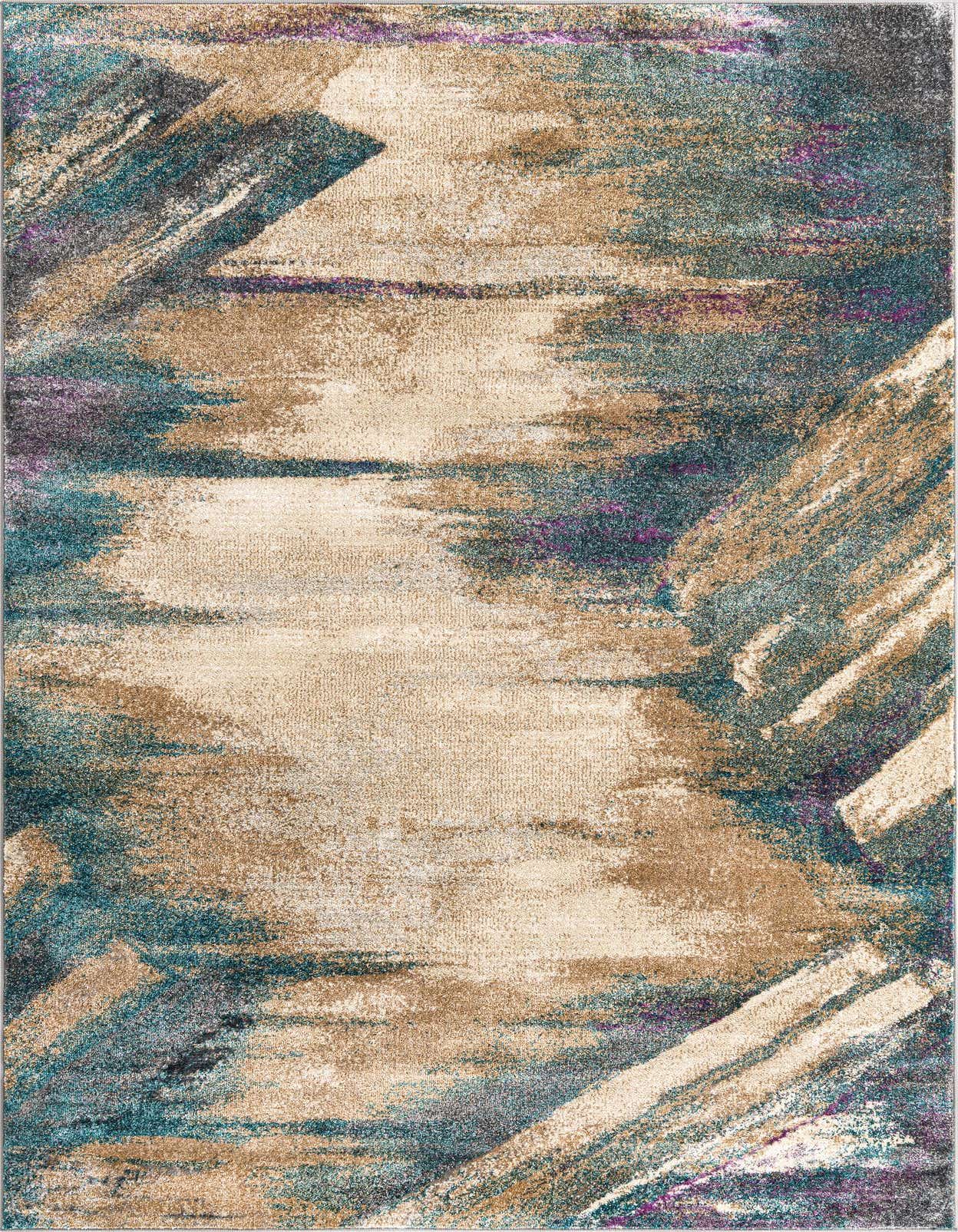 Primary color is Beige. Colors in this rug include: Beige, Blue, Green, Violet, Tan, Teal.