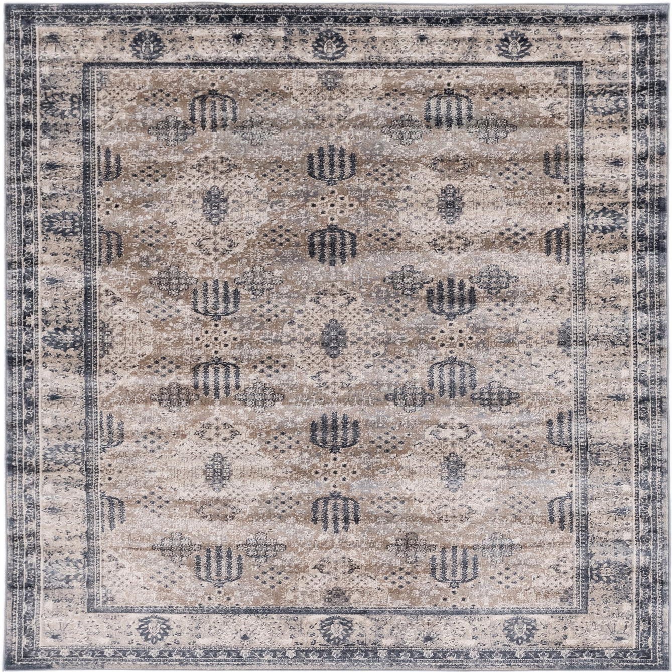 Primary color is Beige. Colors in this rug include: Beige, Blue, Gray, Cream, Ivory.
