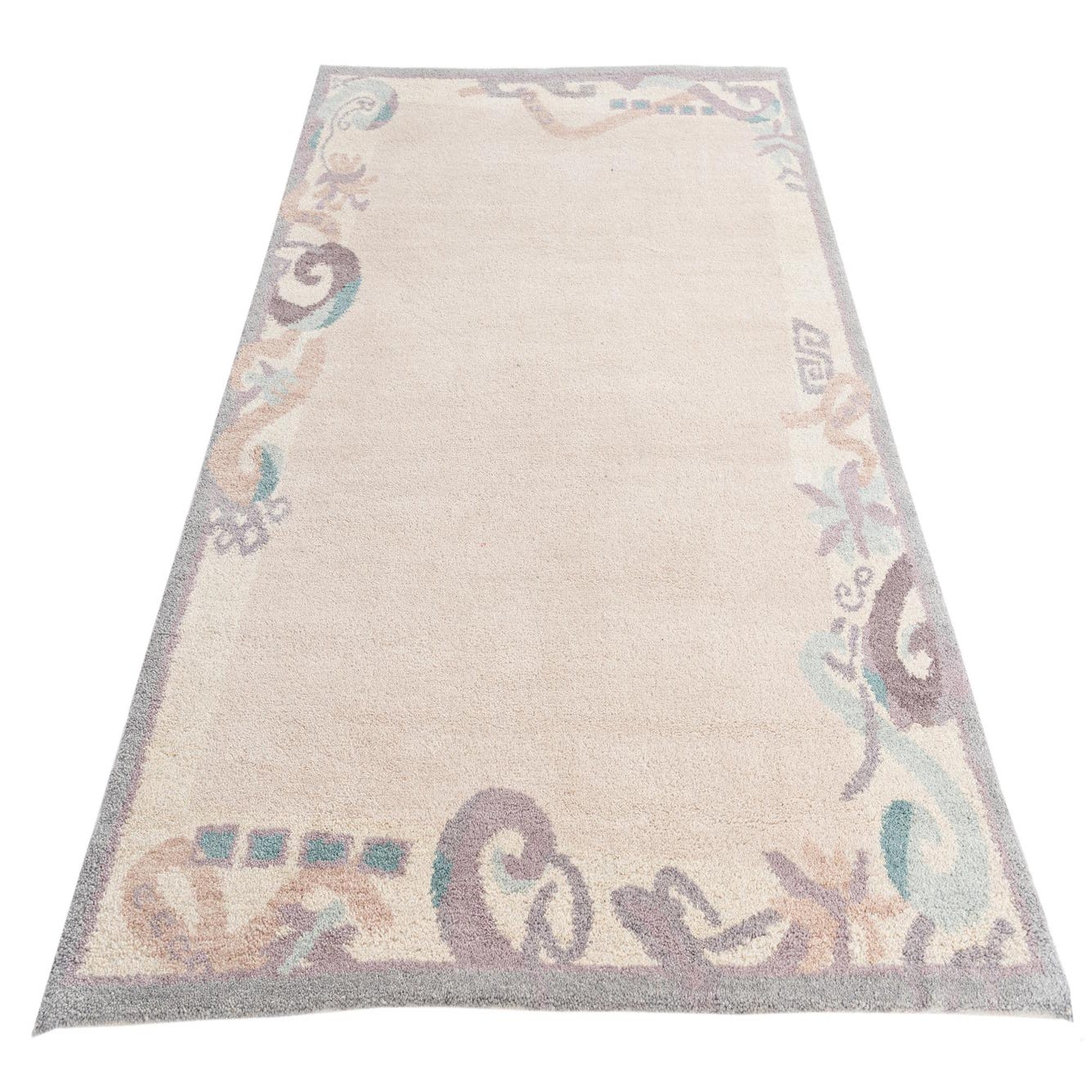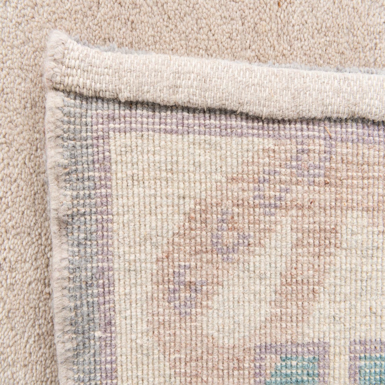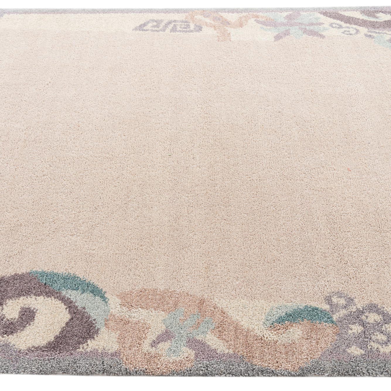 Primary color is Beige. Colors in this rug include: Beige, Gray, Green, Purple, Violet.