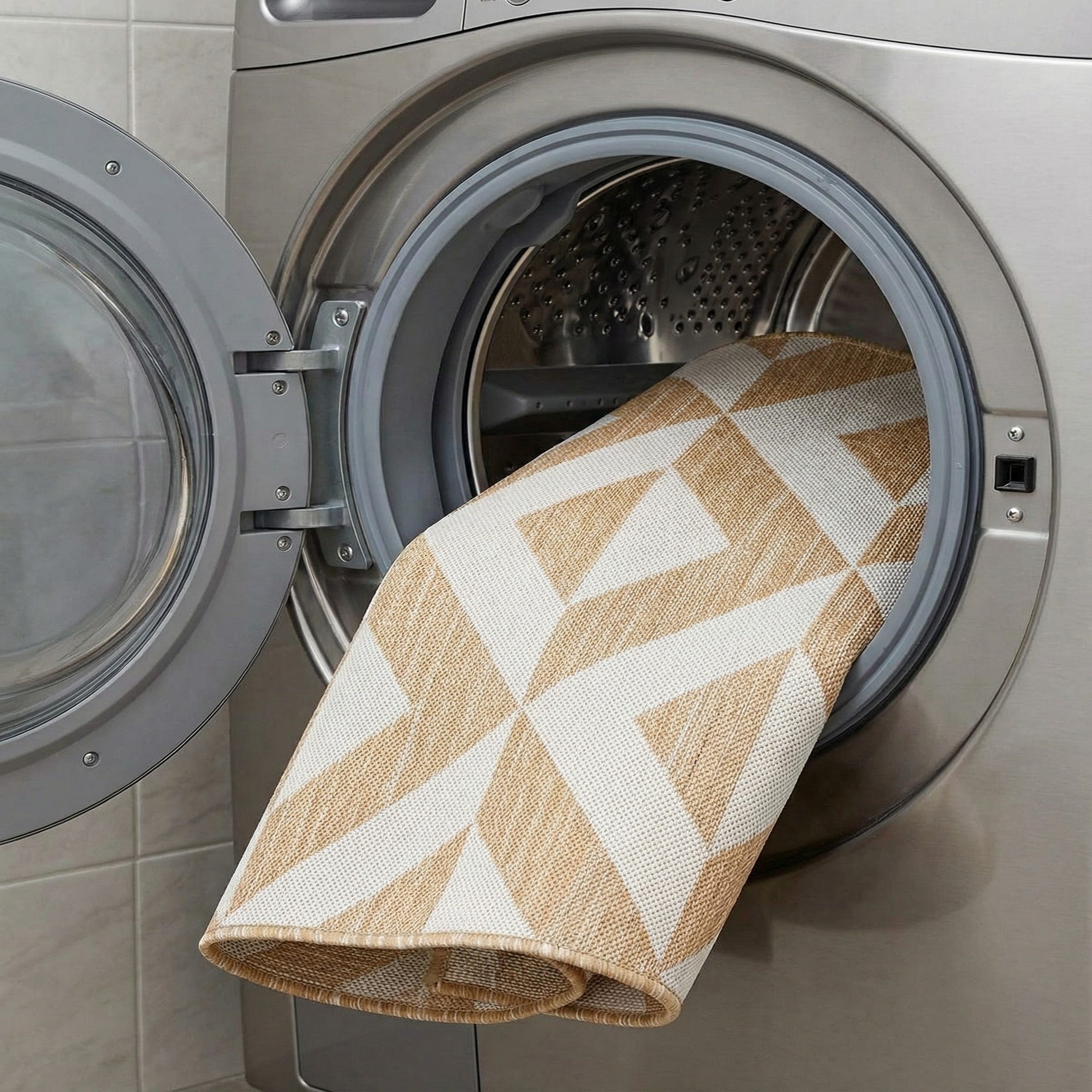 Oval in shape, this rug works well in covered outdoor spaces as well as high-traffic indoor spots. Place it beneath a bistro set on the patio, in a sunny sunroom under casual seating, or at an entry where its neutral palette complements wood, rattan, and leather furnishings. It pairs especially well with coastal and modern farmhouse schemes, mid-century pieces, or contemporary interiors that favor warm neutrals and natural materials.