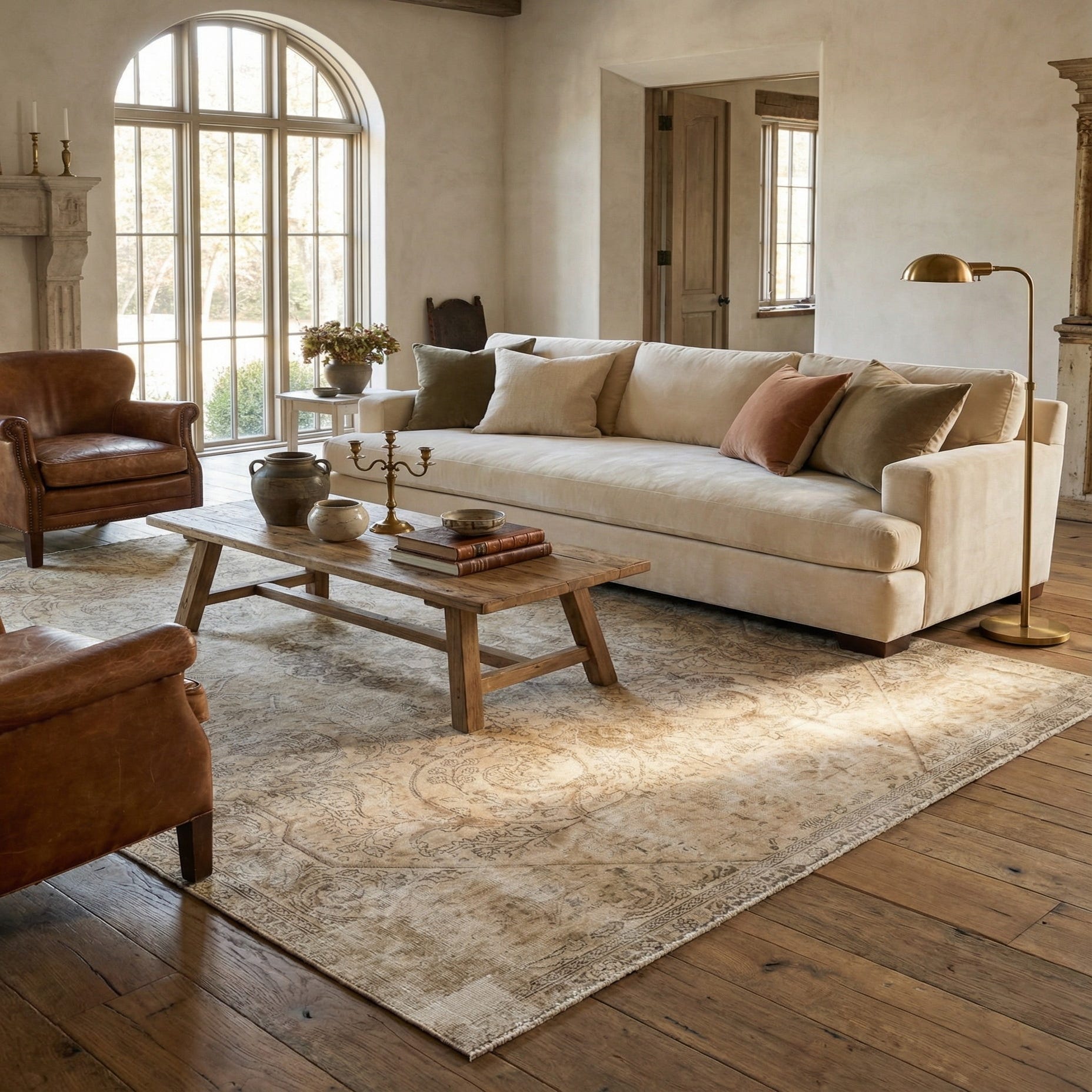 Primary color is Beige. Colors in this rug include: Beige, Brown, Ivory.