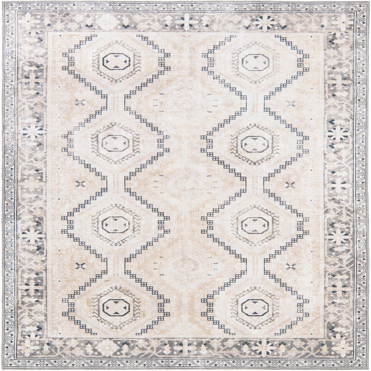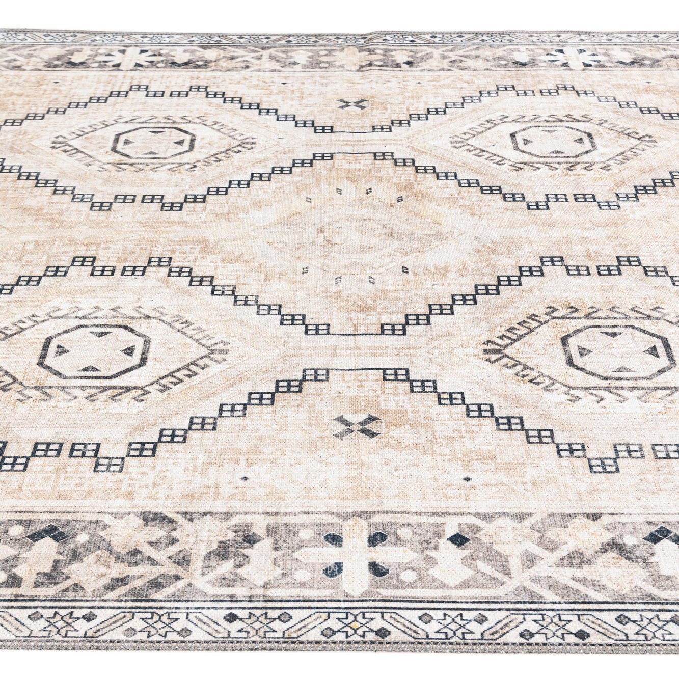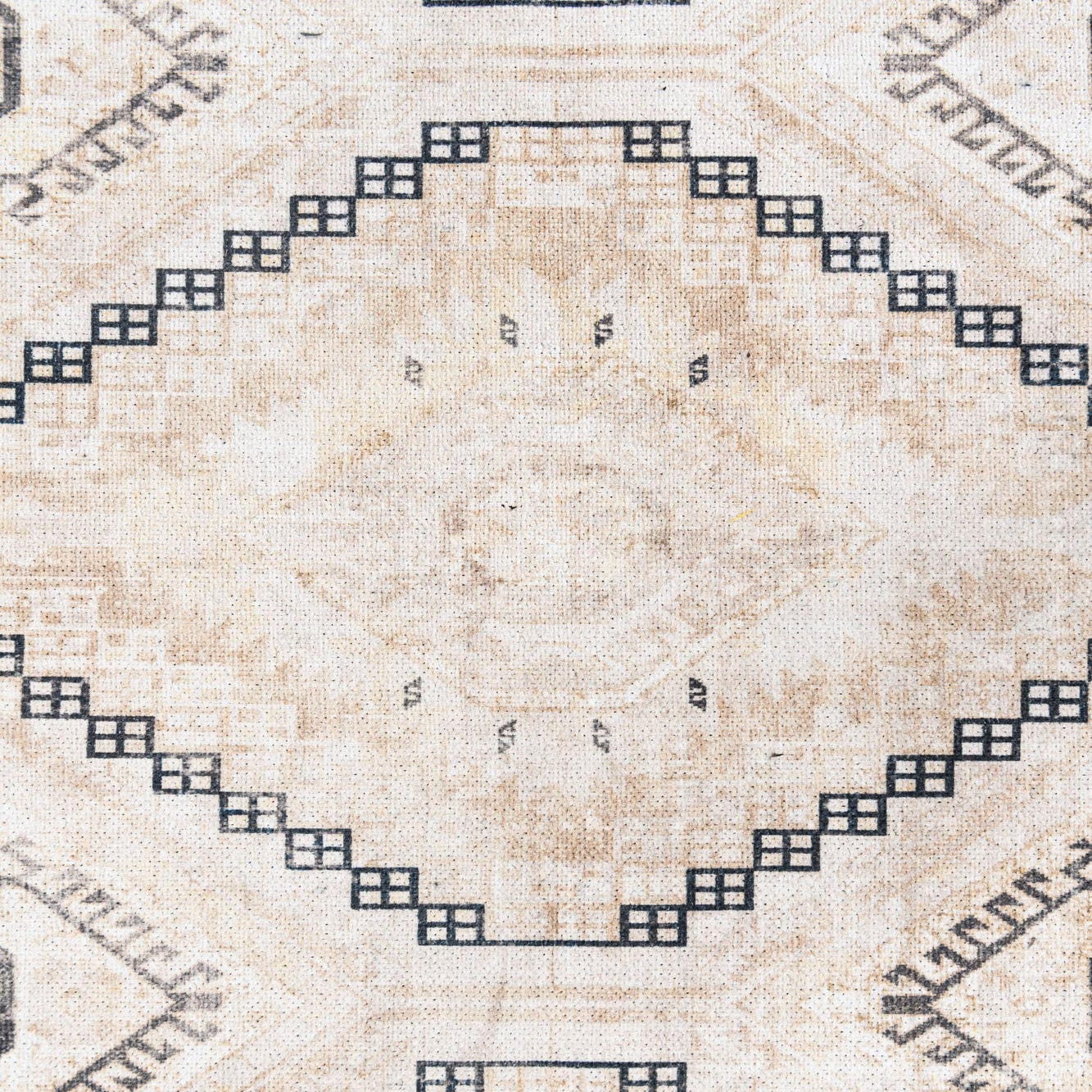 Primary color is Beige. Colors in this rug include: Beige, Black, Brown, Ivory.