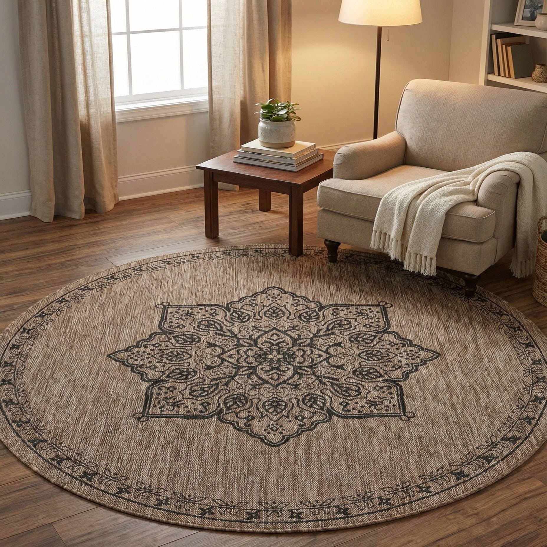 6' x 6' Washable Traditional Indoor / Outdoor Round Rug