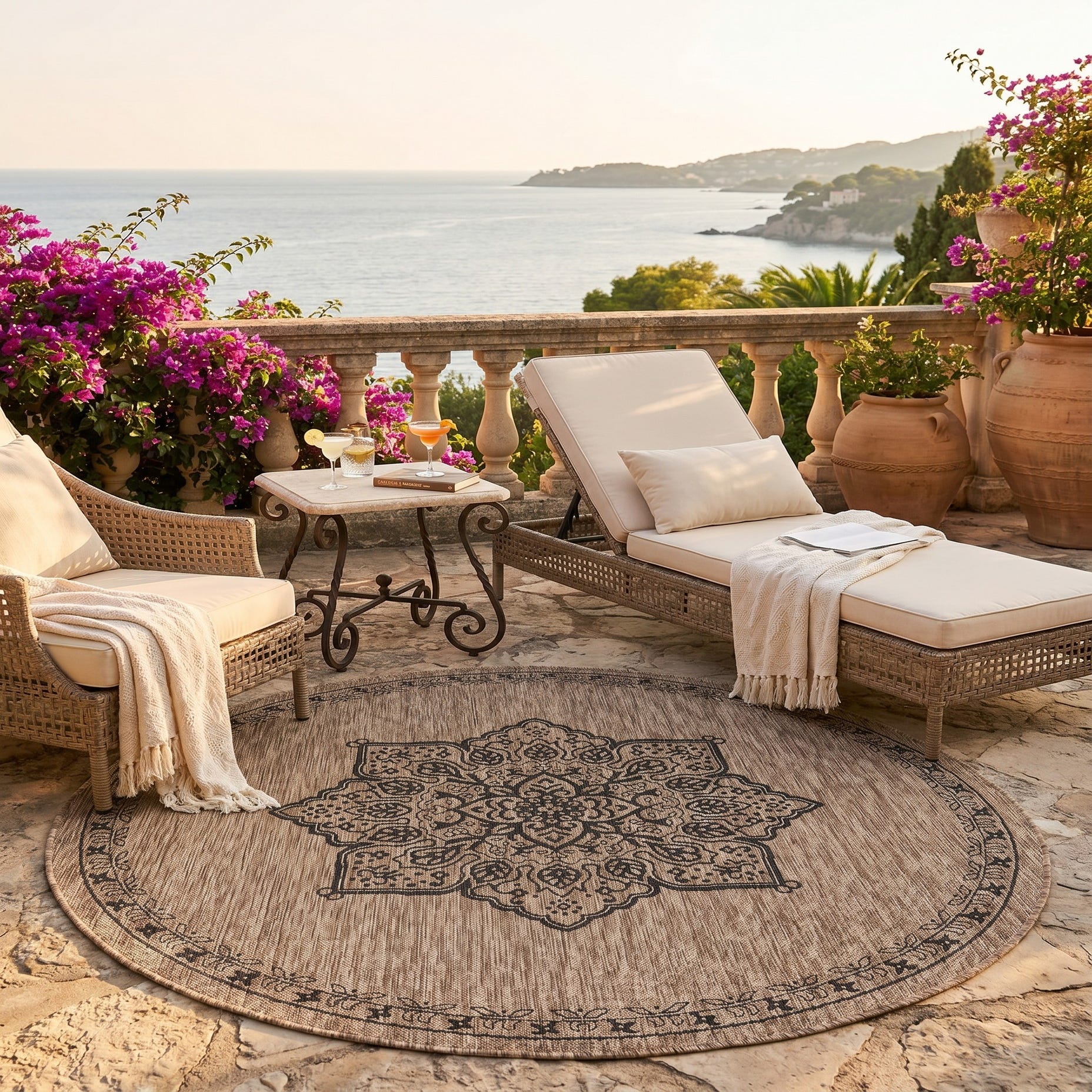 6' x 6' Easy-Clean Traditional Indoor / Outdoor Round Rug