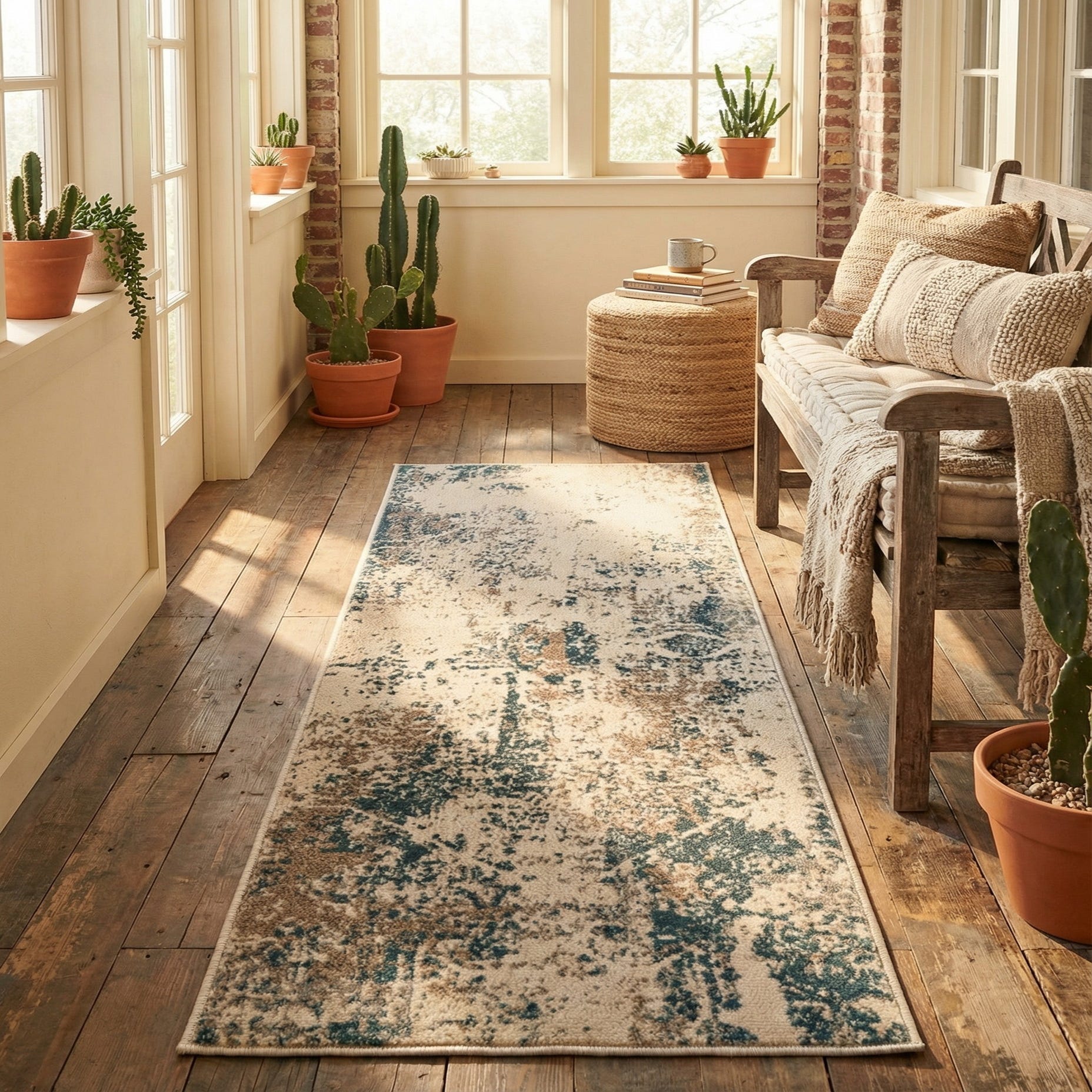 This runner is well suited to hallways, entryways or alongside a bed where a narrow footprint is needed. The neutral beige base and earthy accents pair naturally with warm wood floors, gray upholstery or crisp white trim, making it a good fit for transitional, modern farmhouse or coastal-inspired interiors. Its machine-made construction delivers a consistent finish and tidy edges, so it performs well in moderate-traffic spaces while maintaining its textured, relaxed aesthetic.