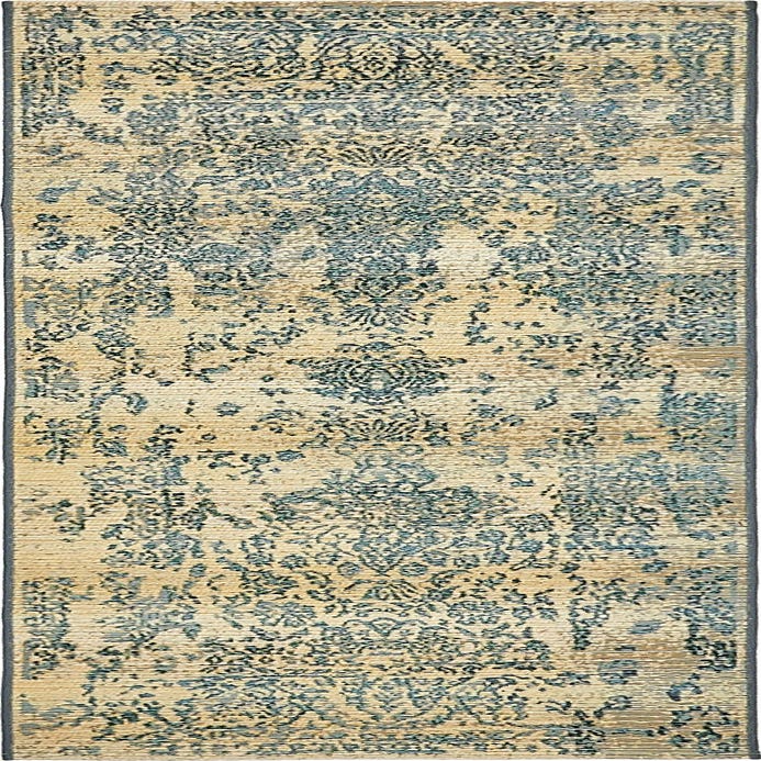 Primary color is Beige. Colors in this rug include: Beige, Blue, Navy Blue.