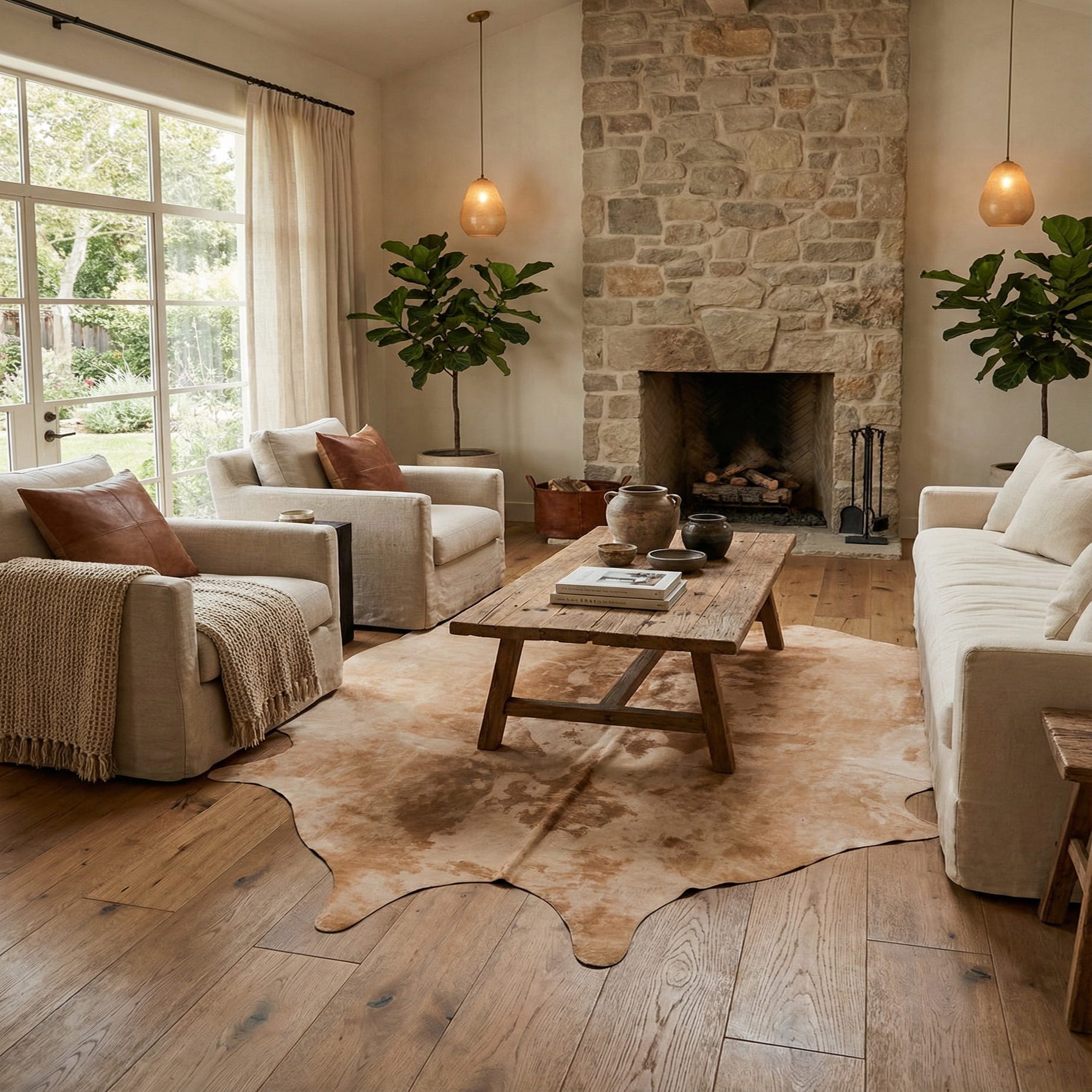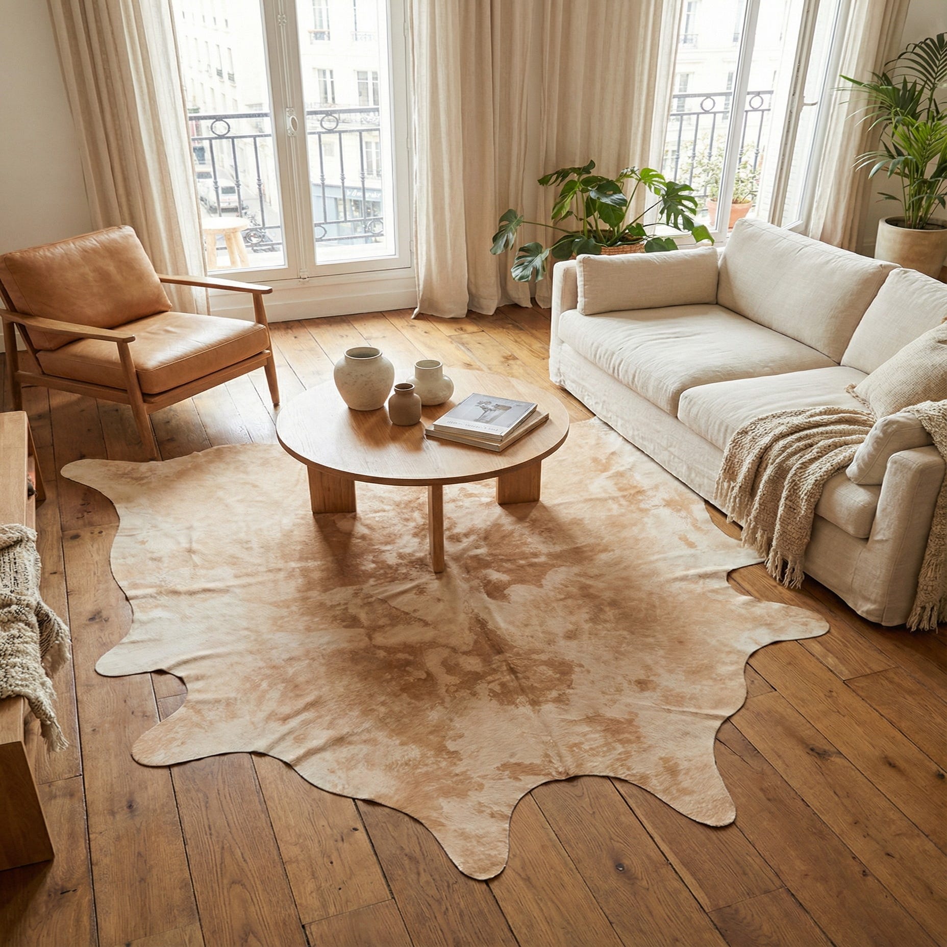 6' 2 x 6' 6 Cowhide Leather Square Rug