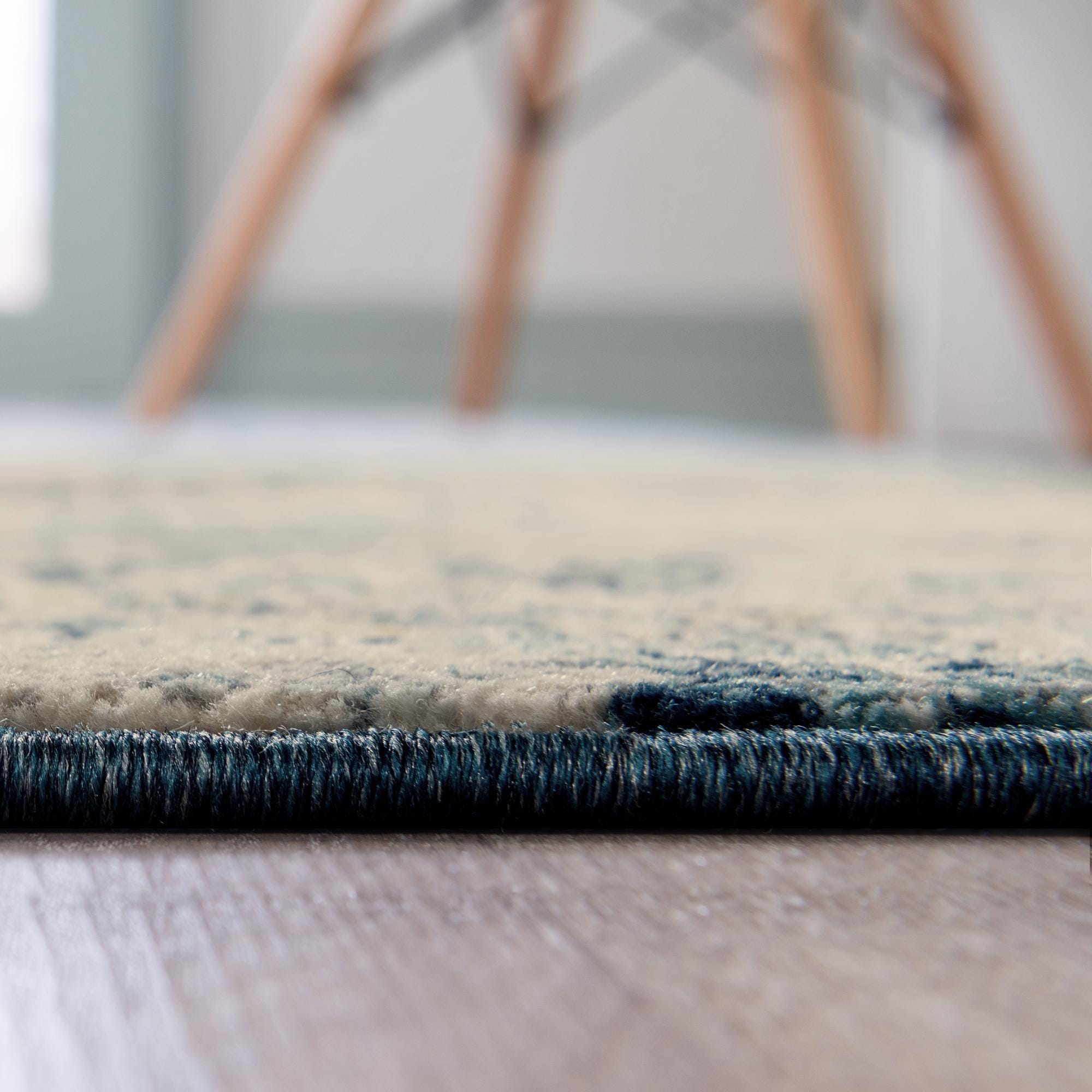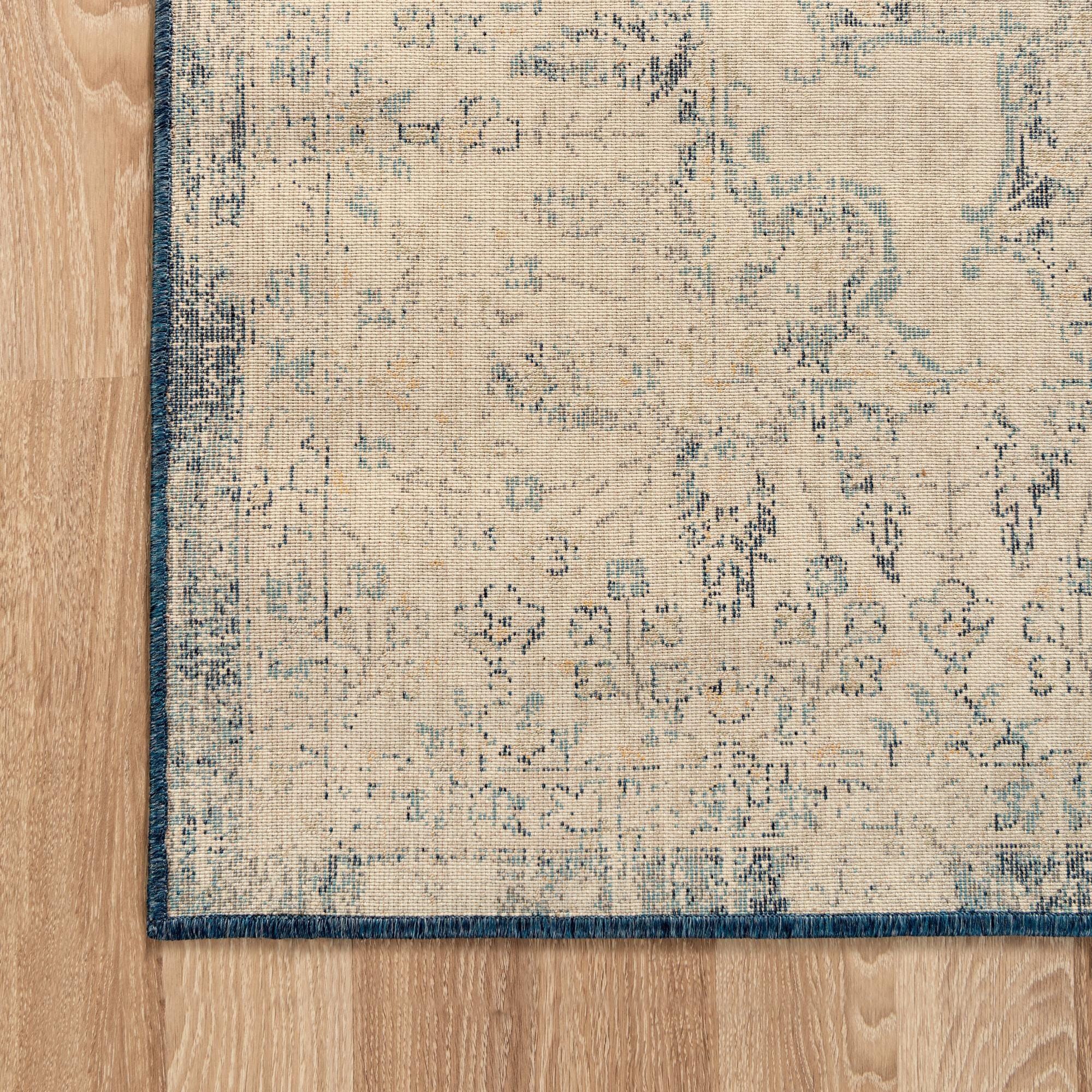 Primary color is Beige. Colors in this rug include: Beige, Blue, Gray, Light Green, Navy Blue.