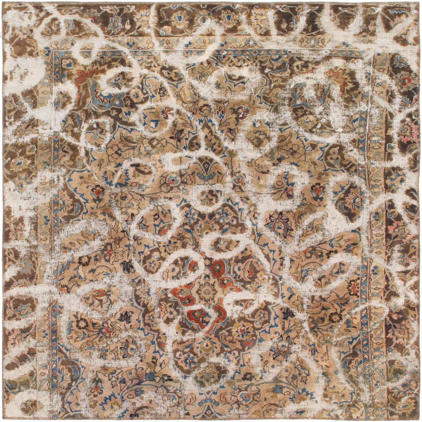 A square 5' 6 x 6' 4 Ultra Vintage wool rug with a distressed Persian pattern in browns, tans, and ivories.