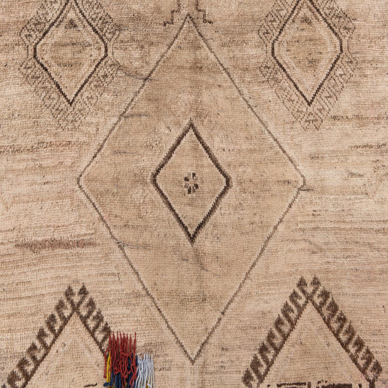 Primary color is Beige. Colors in this rug include: Beige, Brown, Red, Yellow.