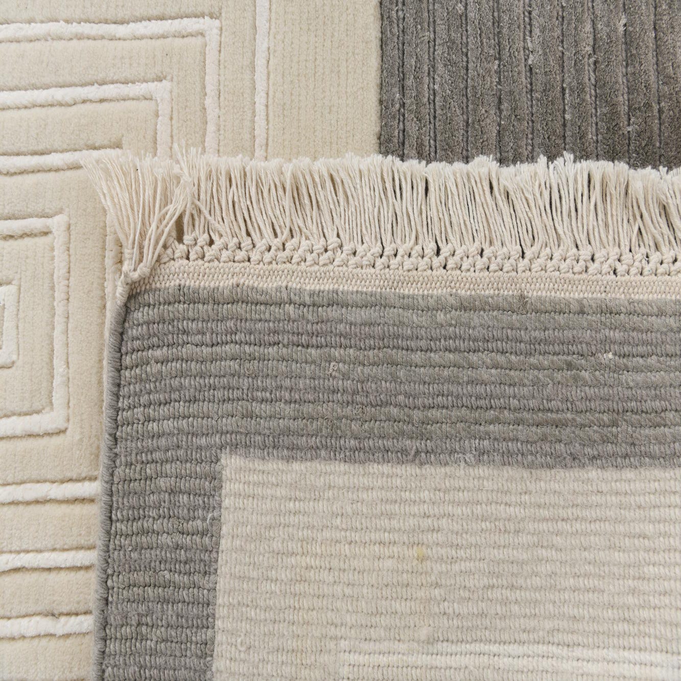 This rug is an ideal choice for spaces where a sophisticated yet understated style is desired. It will complement a variety of interior designs including modern minimalist, contemporary, and transitional décors. The neutral palette allows for this rug to serve as a grounding element in a living room, study, or dining area, pairing seamlessly with both subdued and bolder color schemes. The geometric precision of the pattern introduces structure to an interior without overwhelming it, making this piece a thoughtful choice for those who appreciate calm and balance in their living spaces.