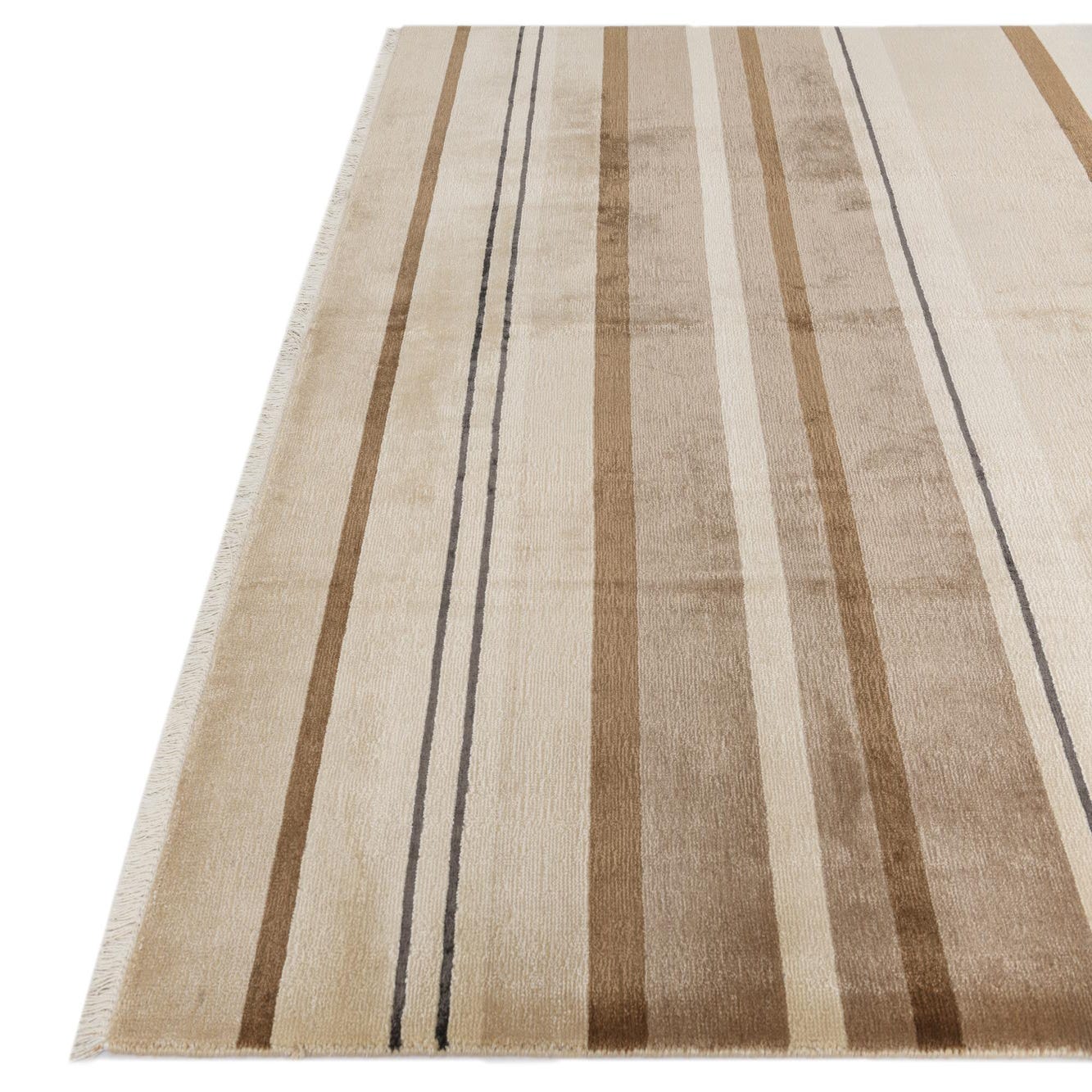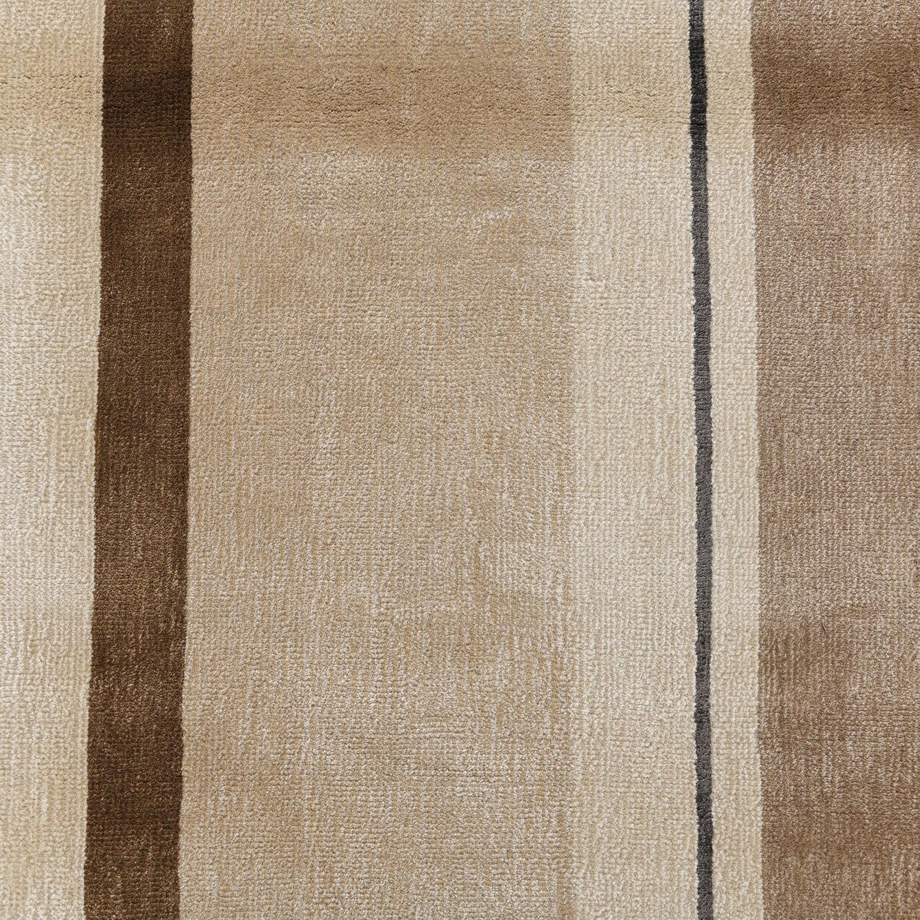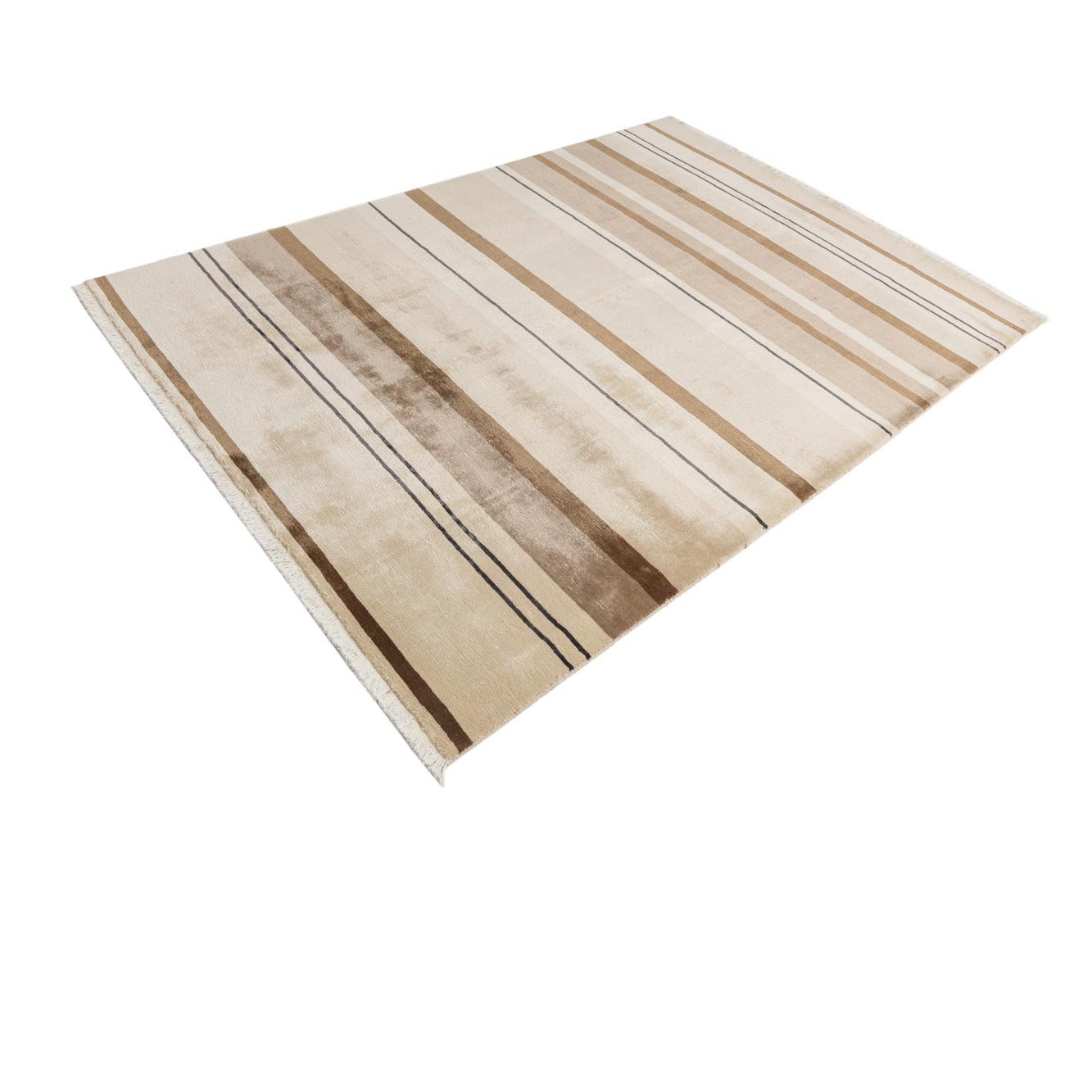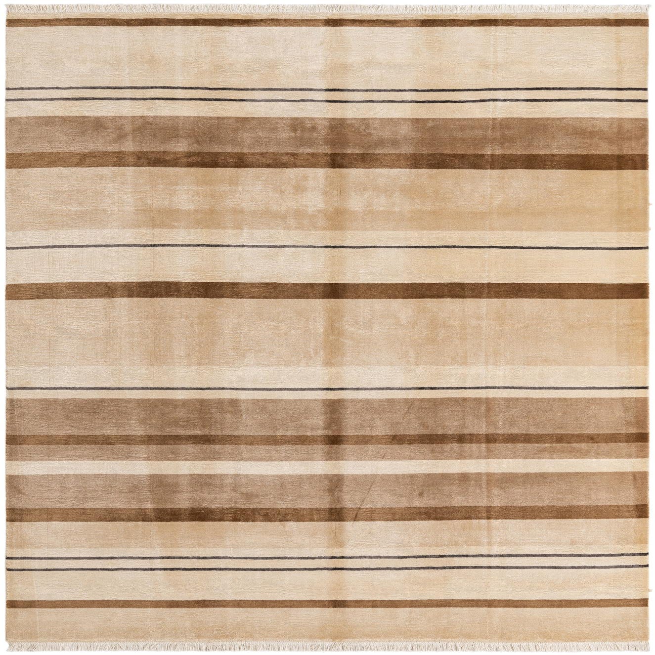 A 6x9 rectangular Darya rug featuring modern horizontal stripes in varying shades of brown, tan, and cream with thin dark accent lines, perfect for a living room.