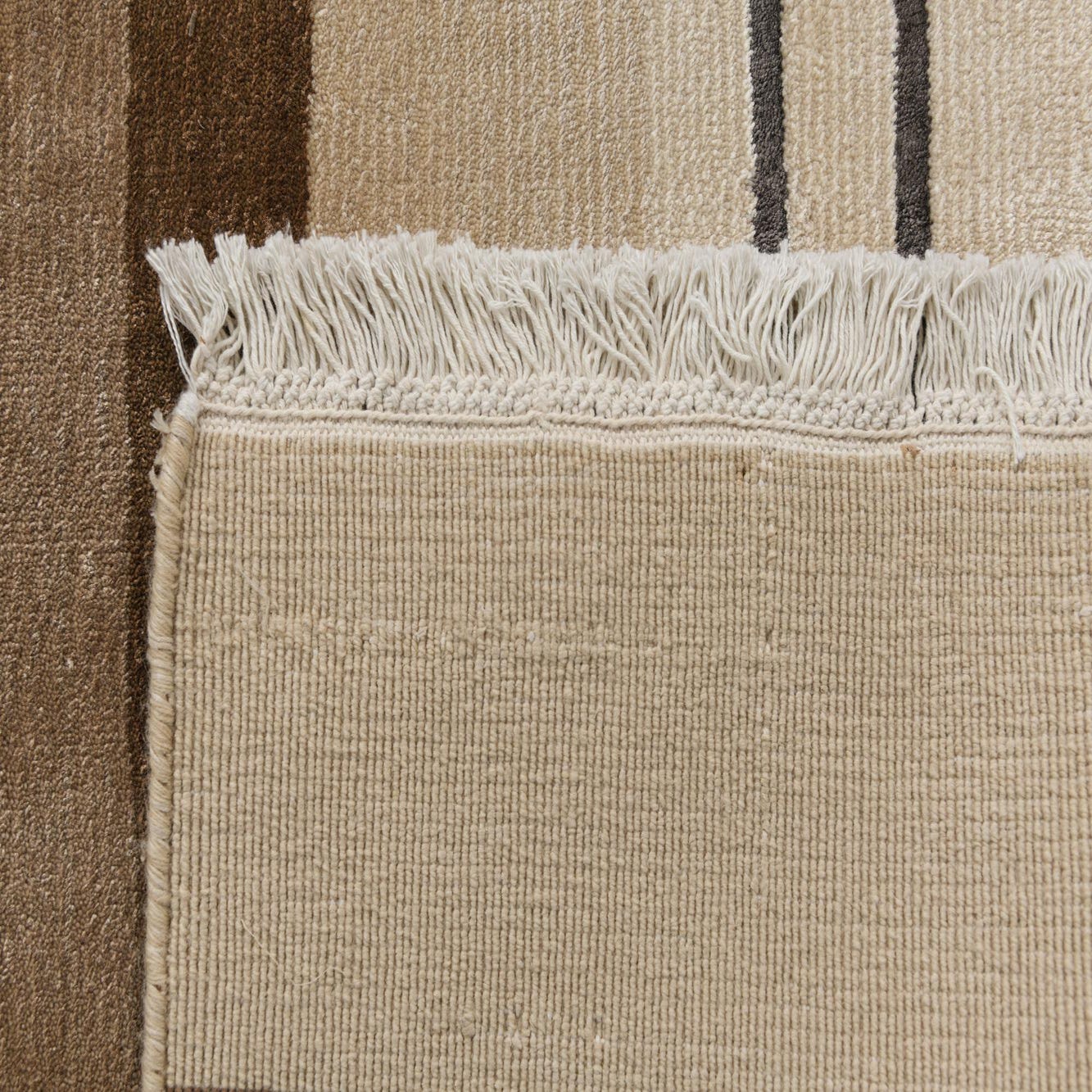 This rug's minimalistic stripe pattern complements a variety of interior styles. It's well-suited for modern settings that worship understated elegance, or it can easily integrate into Scandinavian decor that favors light, neutral colors and natural materials. Its dimensions and quiet sophistication make it particularly fitting for living rooms, home offices, or minimalist bedrooms where the focus is on creating a calm, cohesive space. The wool construction not only adds warmth to a room but also serves as a durable foundation suitable for high-traffic areas.