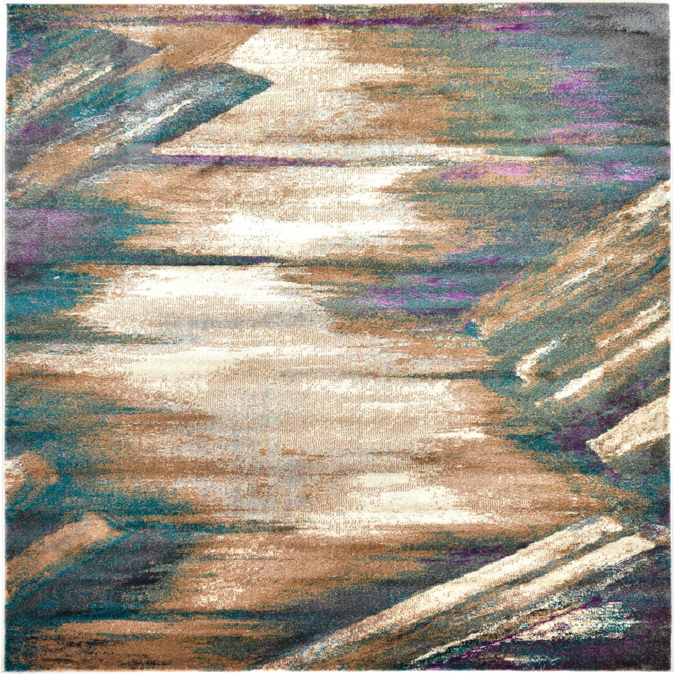 Primary color is Beige. Colors in this rug include: Beige, Blue, Green, Violet, Tan, Teal.