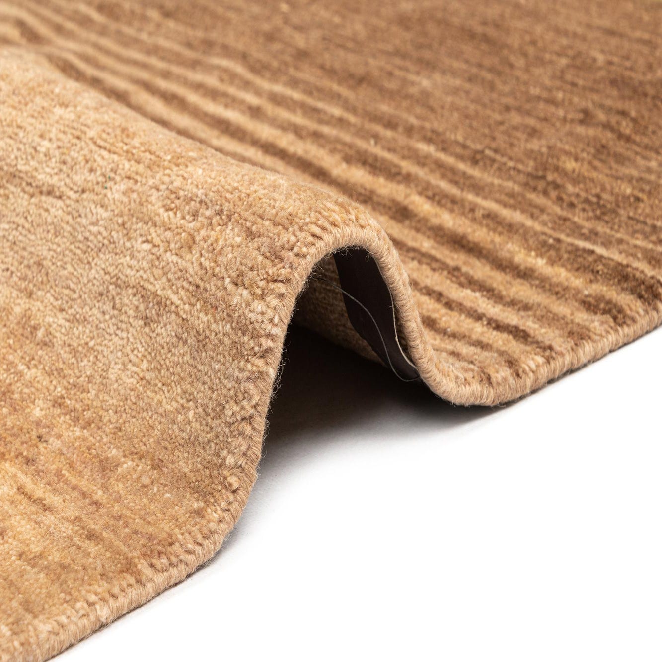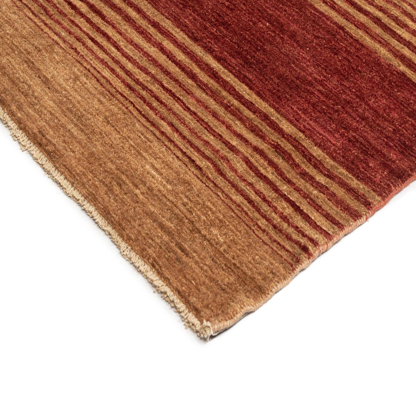 A rectangular 6x9 Juma wool rug featuring horizontal stripes in varying shades of brown, tan, and cream.