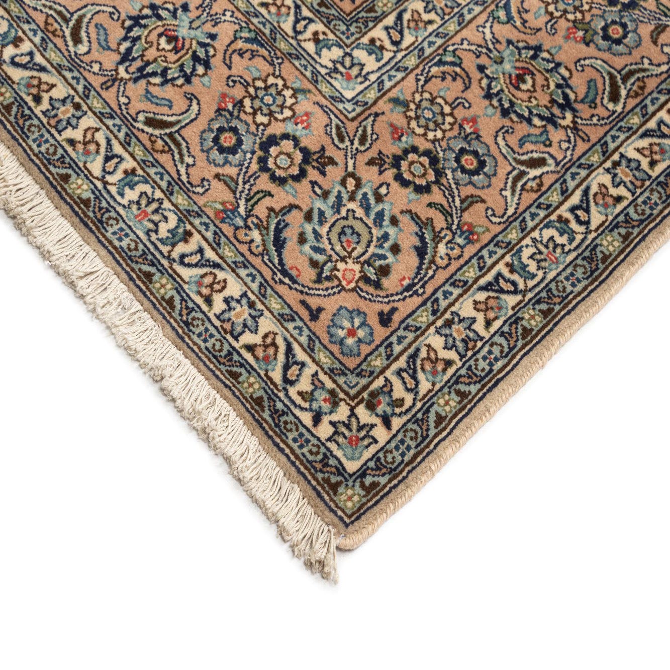 This Kashan rug brings a sense of refined elegance to any space. Its timeless style is well-suited for traditional interiors where its ornate pattern can complement rich wood furnishings and classical decor. The soft color palette allows it to integrate seamlessly into settings with neutral color schemes or provide a subtle contrast in rooms with a more muted aesthetic. The plush texture of the 100% wool construction offers both comfort and durability, making it a valuable addition to living rooms, dining areas, or any space where a touch of classic beauty is desired.
