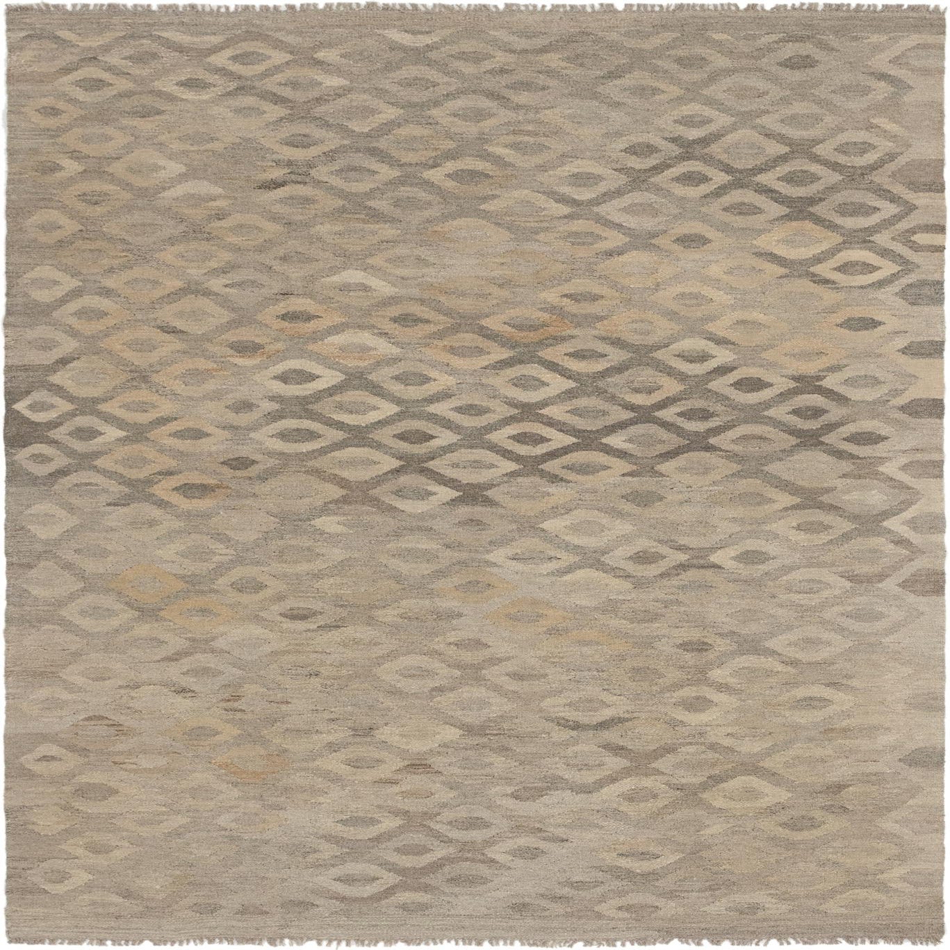 The Kilim Modern collection presents a tastefully designed 6x9 hand-woven rug crafted from 100% wool. This piece showcases a contemporary take on the traditional kilim pattern with a series of geometric shapes that deliver texture and visual interest. Its color palette brings together tones of beige, brown, cream, and light brown, with beige as the dominant background color, imparting a warm and versatile aesthetic.