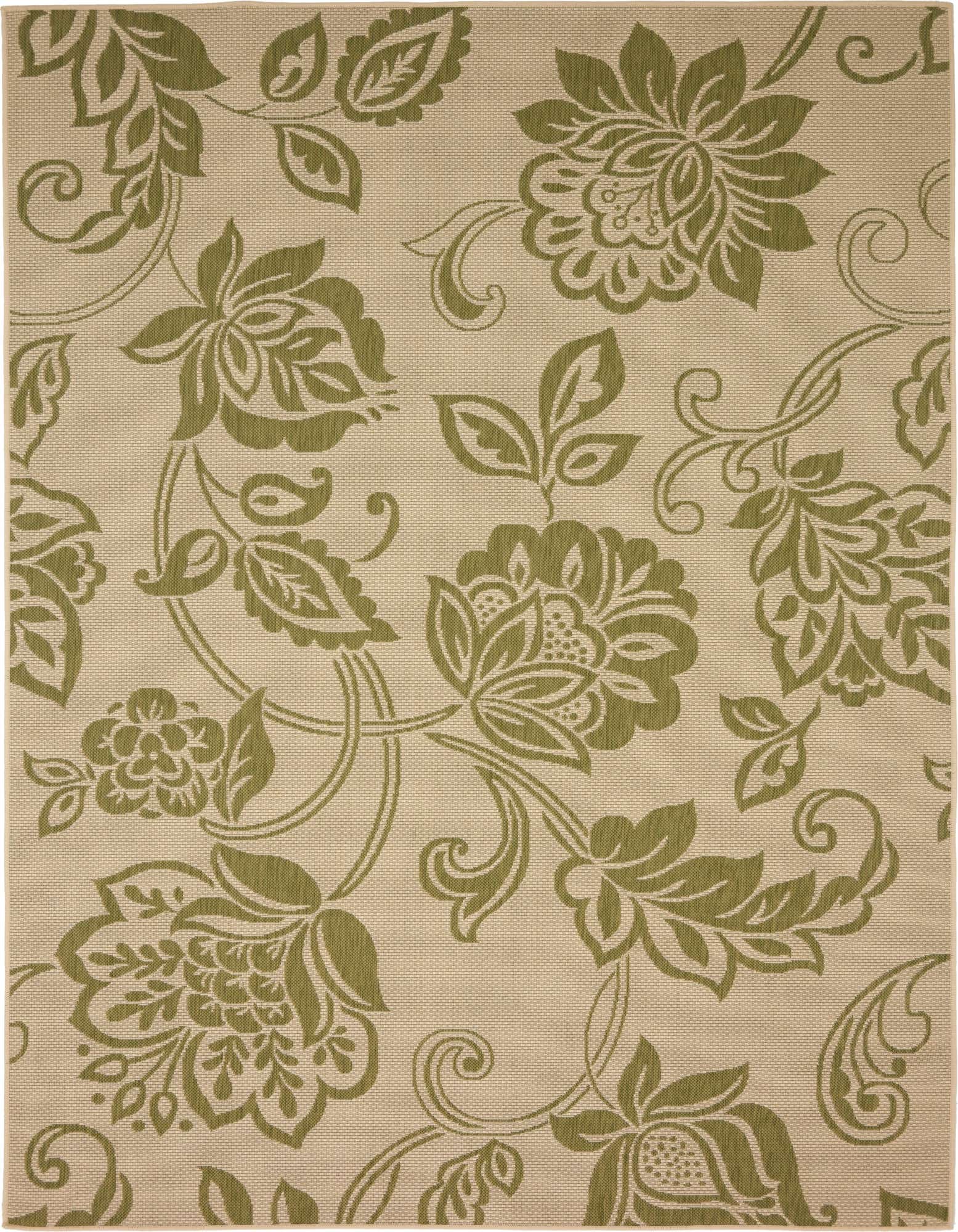 Primary color is Beige. Colors in this rug include: Beige, Green.