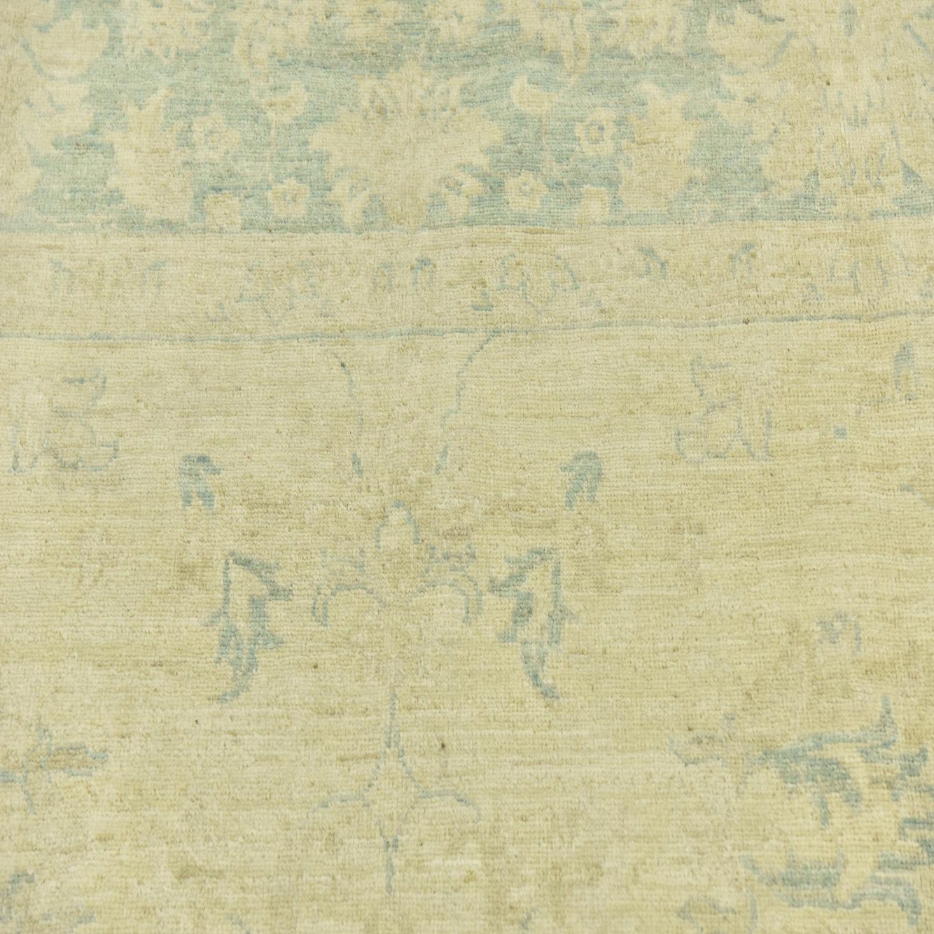 The Peshawar Ziegler collection presents a 6x9 hand-knotted rug crafted from 100% hand-spun wool, offering a heritage-rich statement to any space it graces. This piece showcases a gentle beige background with a harmonious assortment of light blue, light brown, and tan accents woven throughout its design. The subtlety of the traditional pattern exudes a timeless elegance, featuring floral and botanical motifs that convey a sense of tranquility and refined taste.