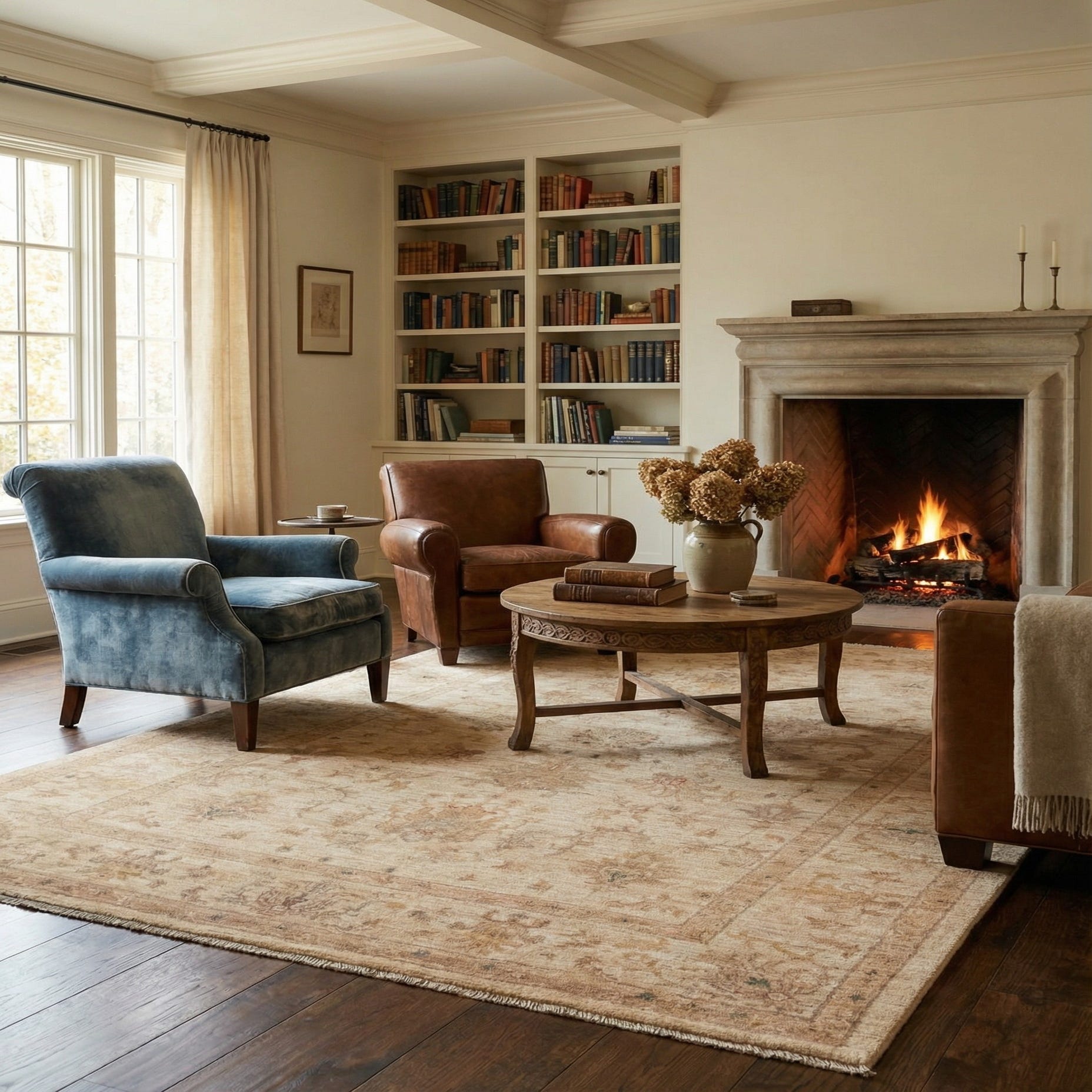 This Peshawar Ziegler rug is well-suited for a range of interior designs, from traditional spaces that require a piece with a sense of history, to transitional settings where it can act as a bridge between classic and contemporary elements. It could serve as a statement piece in a pared-down room, or complement richer, more layered interiors. Its natural color scheme and design make it adaptable to various room settings, including living rooms, dining areas, home offices, or bedrooms where a touch of sophistication is desired.