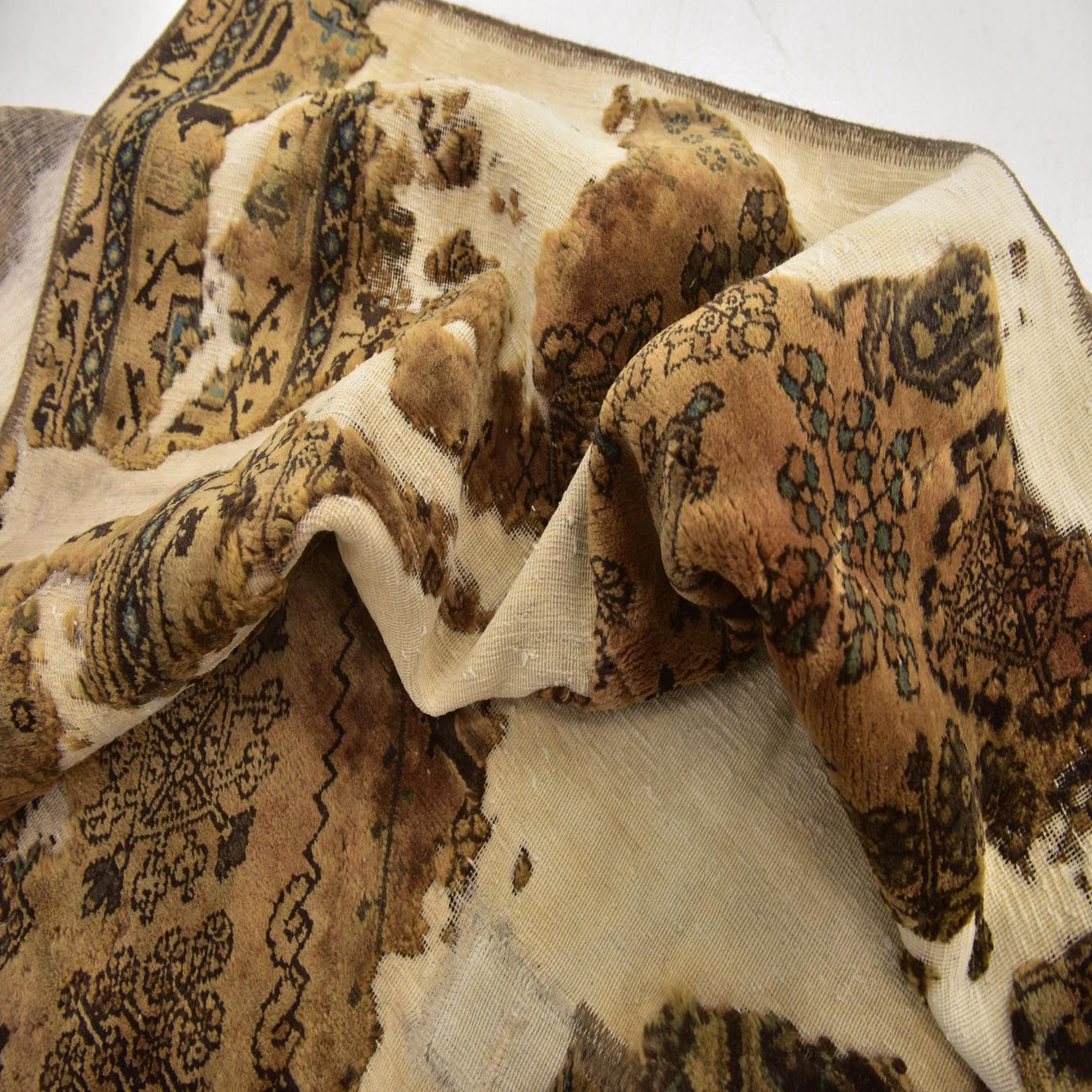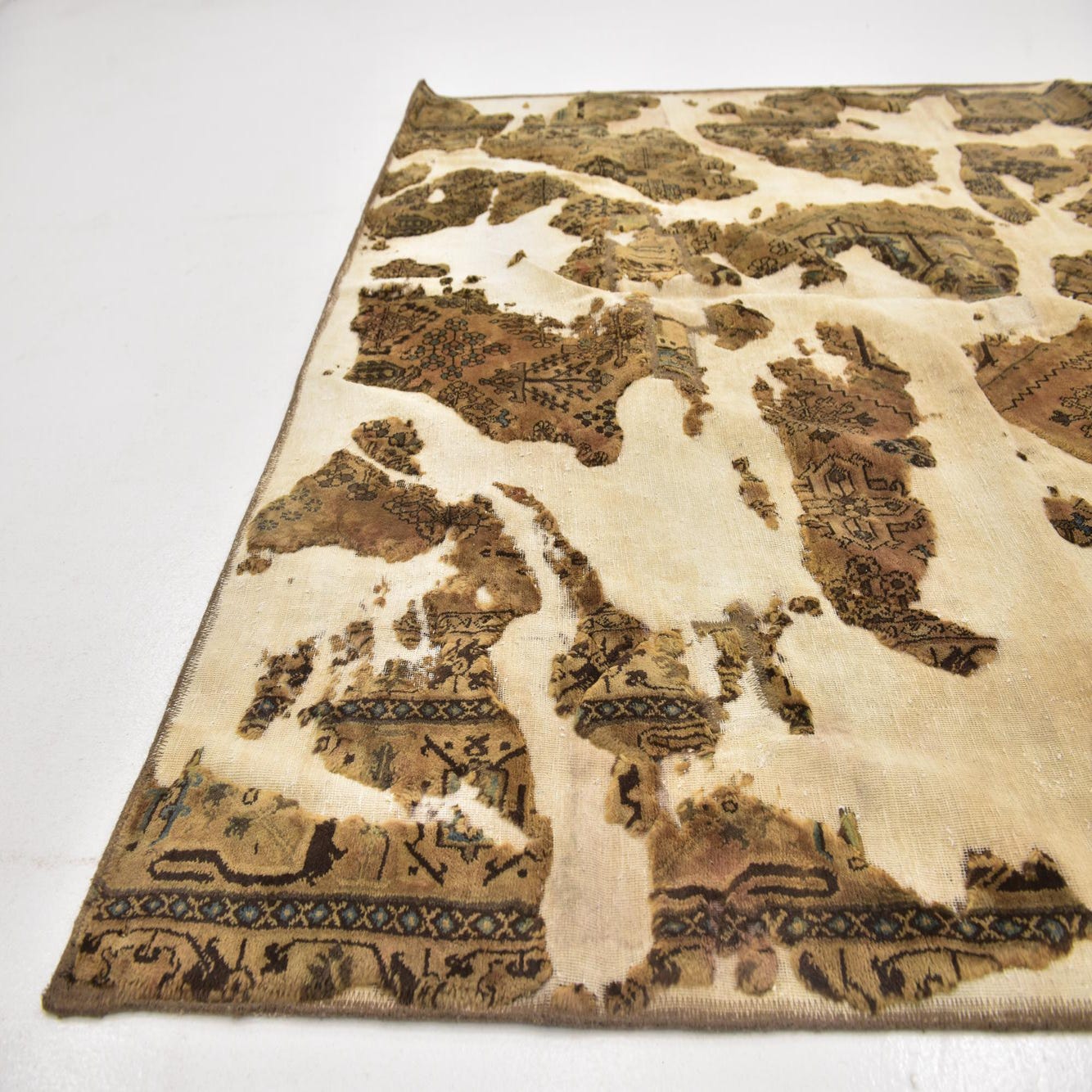 This Persian Ultra Vintage rug is an antique Persian Rug that has been washed, over-dyed, and then shaved down to a low pile. Look at the detail pictures to fully appreciate the uniqueness of this piece.
