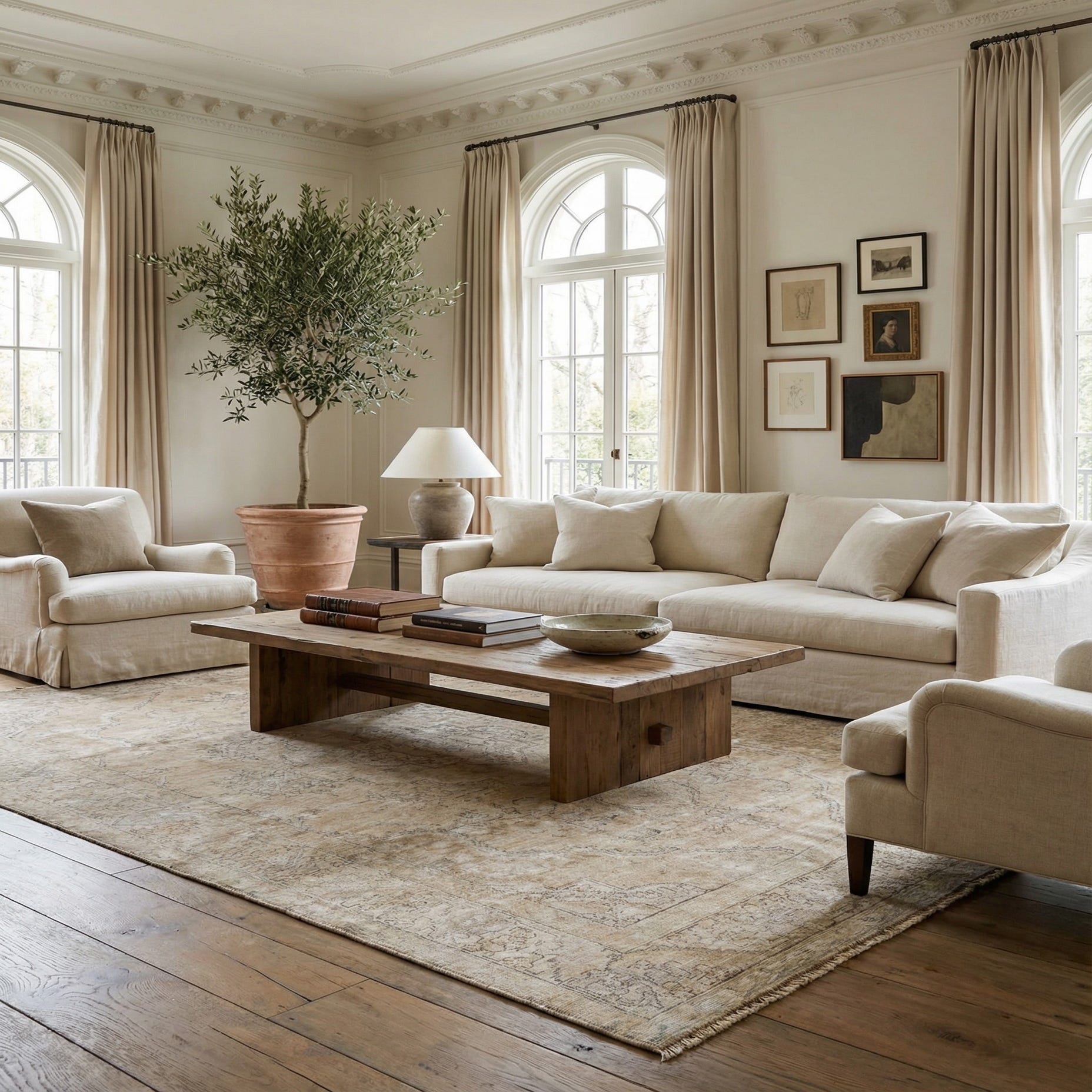 Primary color is Beige. Colors in this rug include: Beige, Brown, Ivory, Olive, Black.