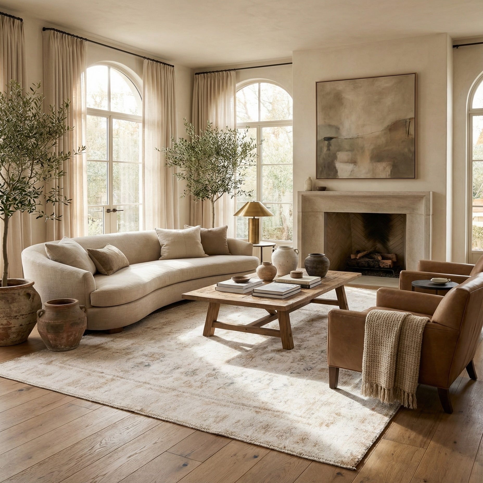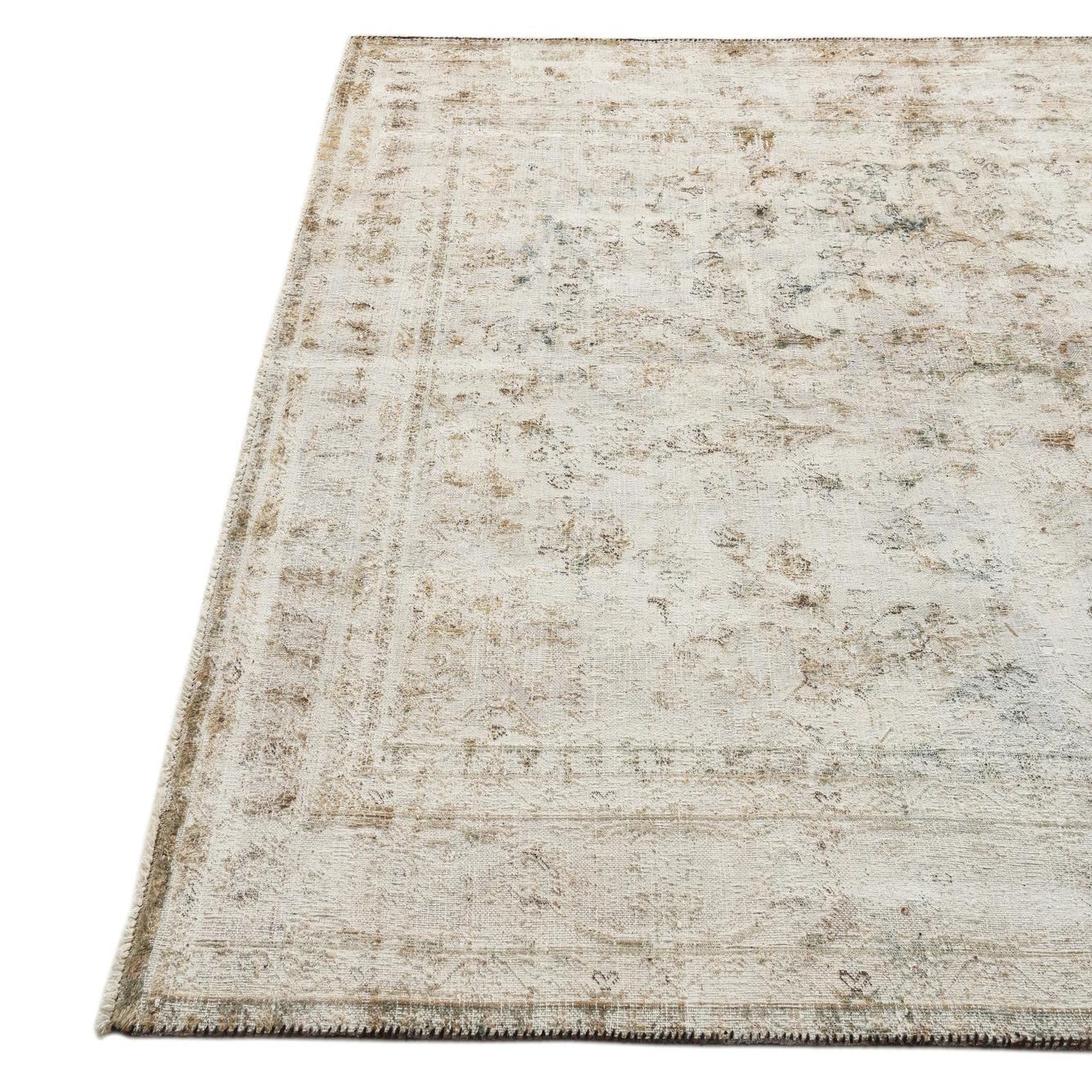 This rug works well as an anchor for living rooms, bedrooms, or sitting areas where a calm, layered look is desired. It pairs naturally with linen sofas, light oak or reclaimed wood furniture, and leather accent chairs; navy pillows or a dark metal lamp will pick up the blue accents for added depth. Use it to soften hardwood floors in a transitional or modern farmhouse setting, or to add a subtle historic touch to a contemporary space.