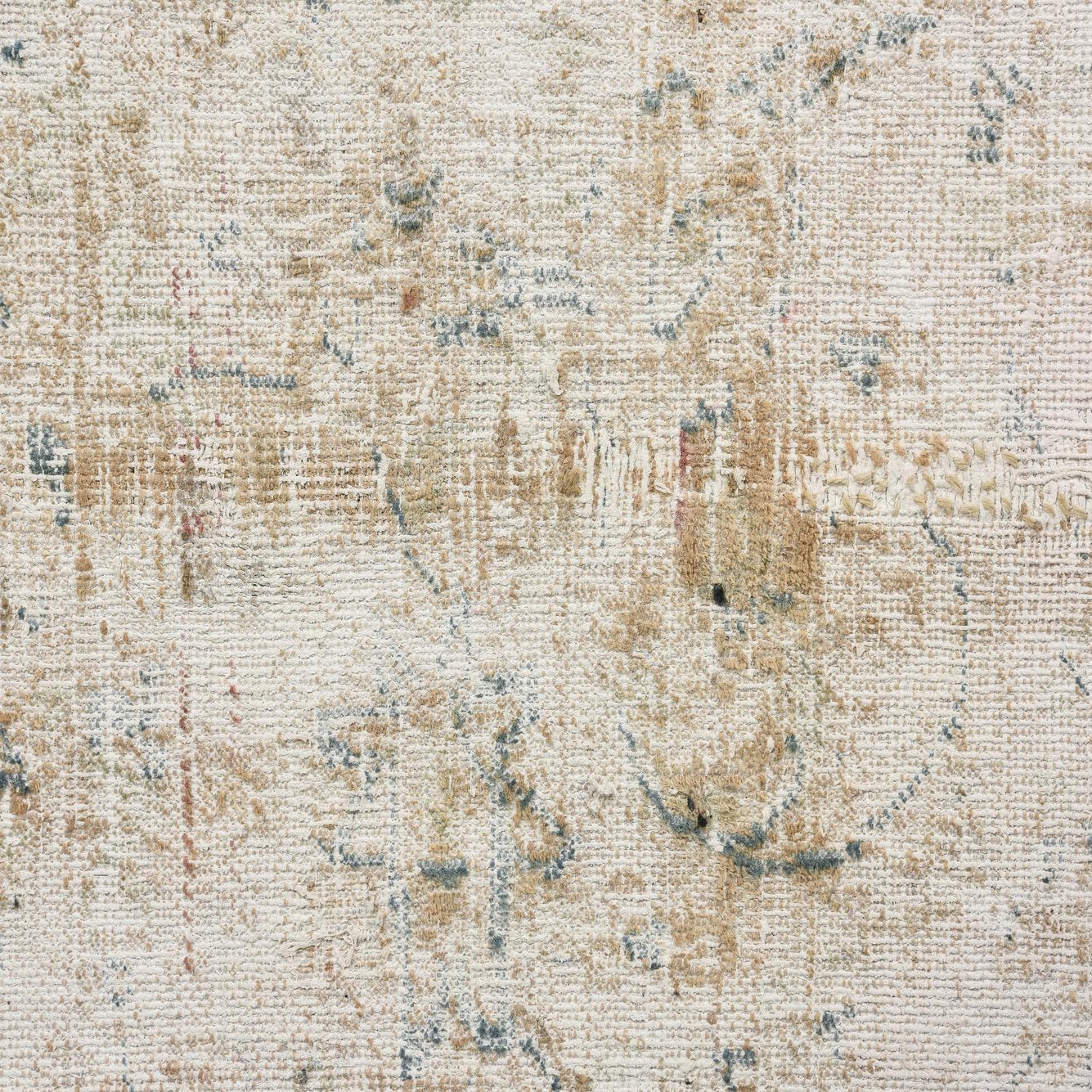 Primary color is Beige. Colors in this rug include: Beige, Blue, Ivory, Pink.