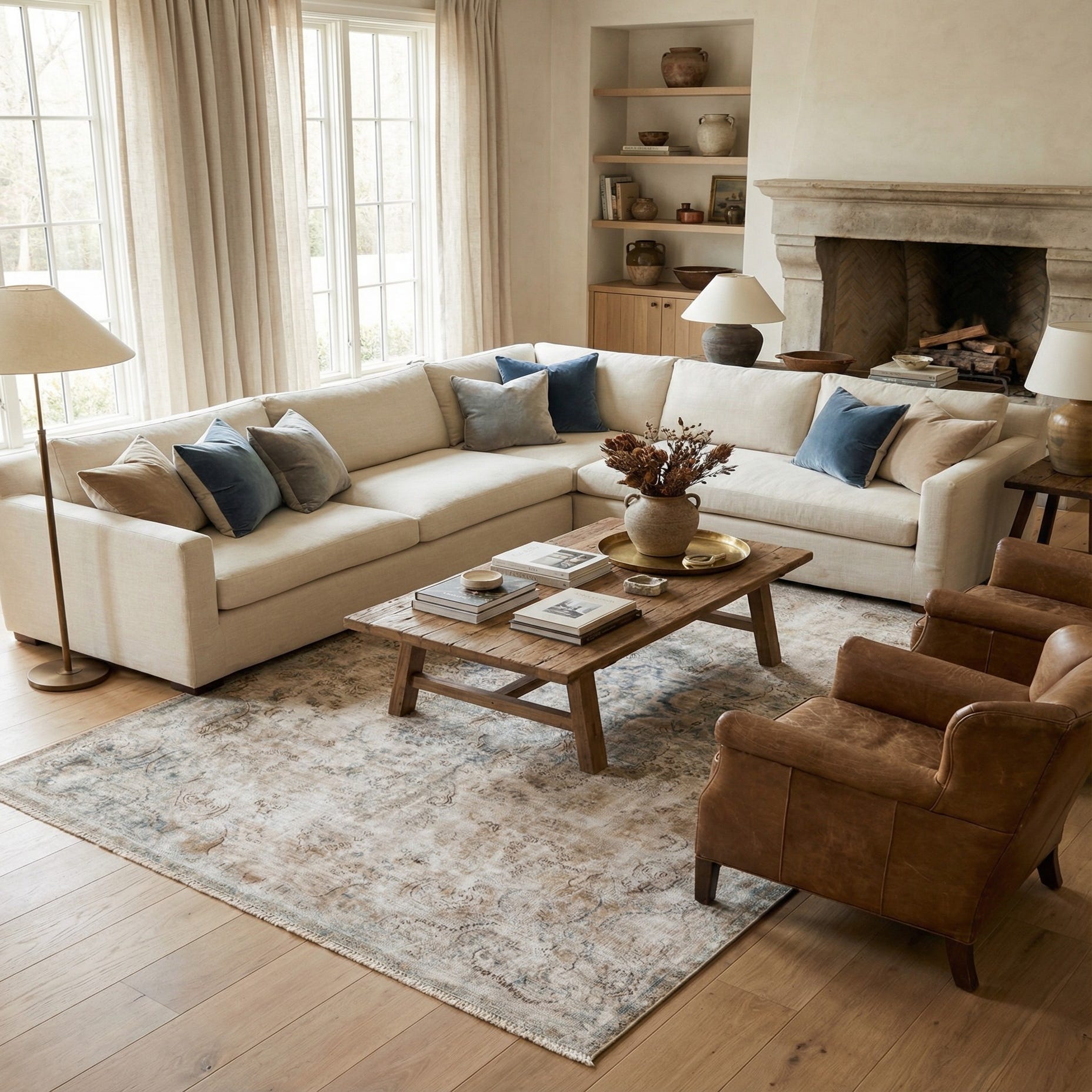 This rug is exceptionally versatile and would complement various decor styles. It would serve as an elegant anchor in a traditional living room, add warmth to a modern minimalist space, or provide a refined touch in a transitional setting. Its subdued color palette allows for easy integration with existing furniture and decor.