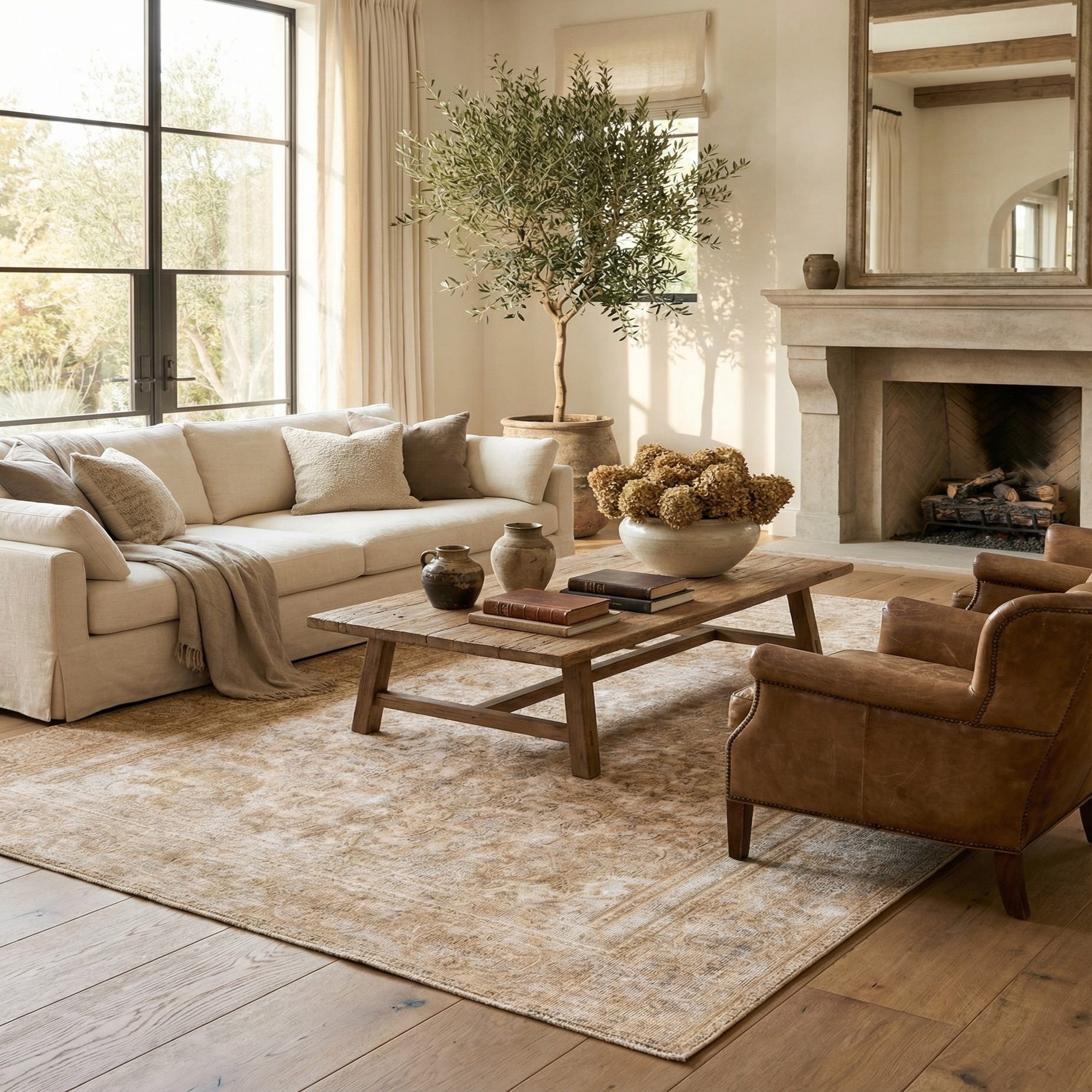 The Ultra Vintage collection presents a sophisticated hand-knotted rug crafted from 100% wool, sized at a versatile 6x9 feet. This rug features a beige background that eloquently supports a refined pattern dotted with hues of brown, ivory, and subtle injections of navy blue. The design boasts an intricate assortment of traditional motifs that converge in a harmonious balance of florals and ornamental accents. Its texture echoes the illustrious quality known to handcrafted woolen rugs, delivering both visual appeal and a tactile experience.