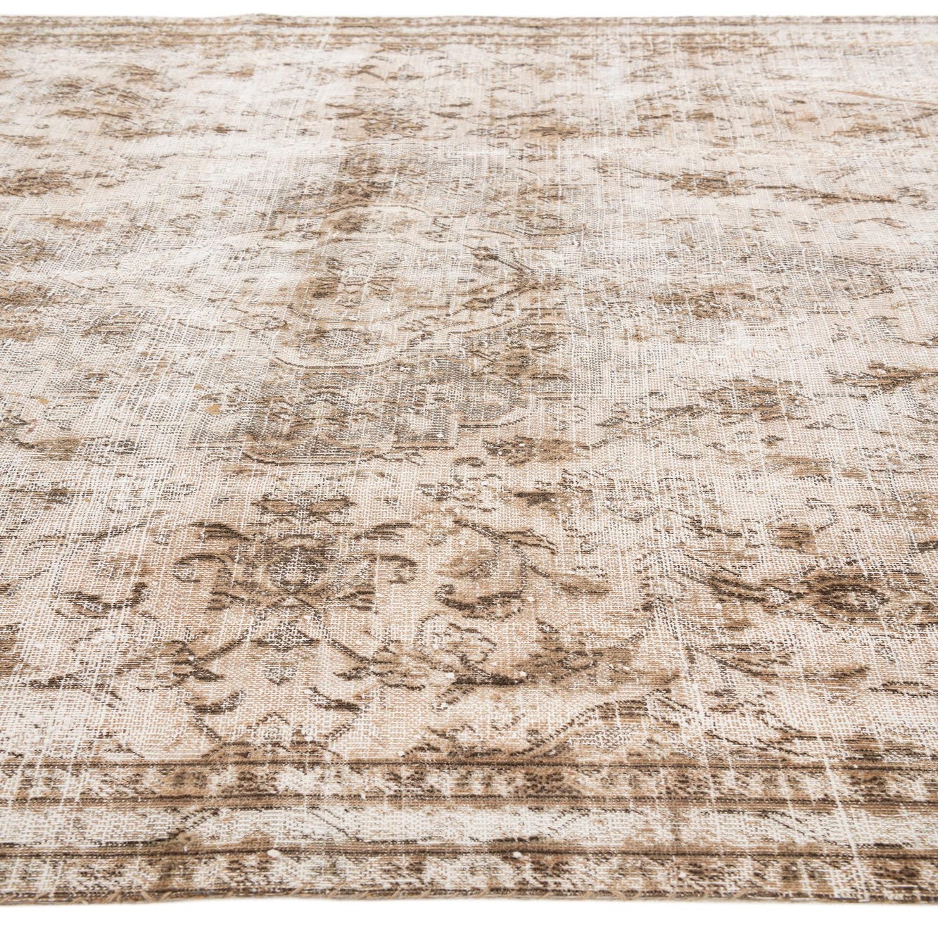 A 6x9 rectangular Ultra Vintage wool rug featuring an ornate Persian medallion pattern in distressed brown and ivory tones.