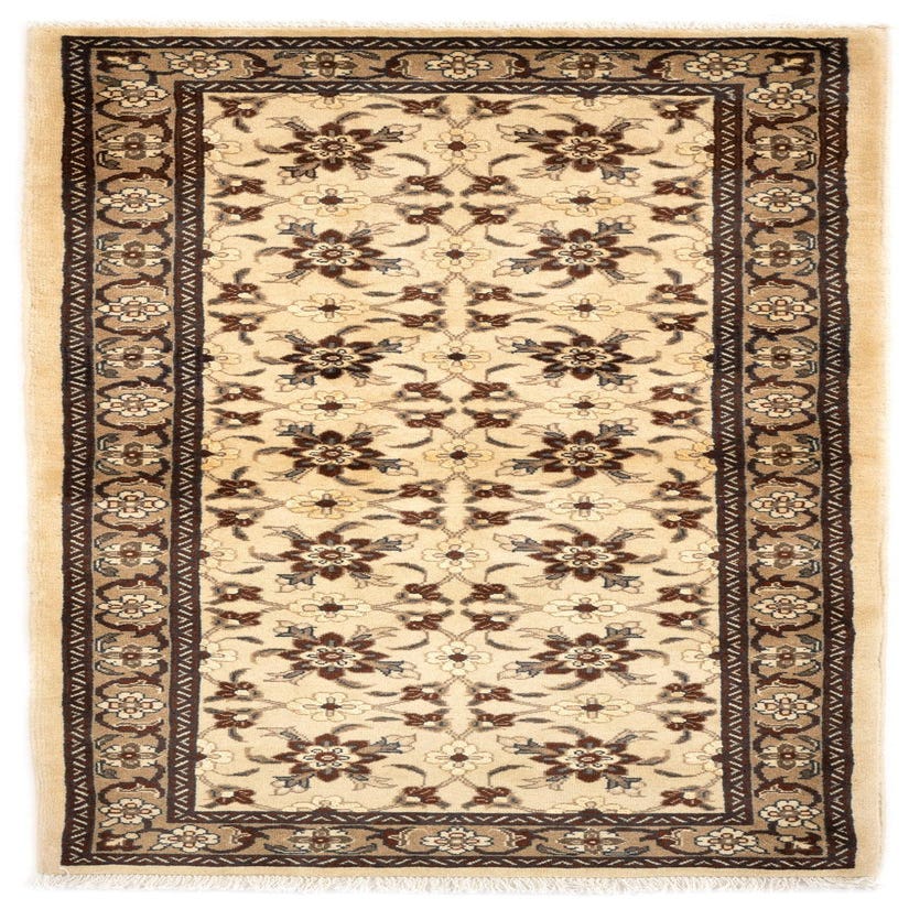 From the Tabriz collection, this hand-knotted 7 ft runner is crafted with 100% wool, showcasing a sophisticated and timeless design. The background is a warm beige, providing a versatile base for the intricate floral and filigree motifs that dance across the surface in shades of brown, light brown, and dark blue. The central pattern is framed by a richly detailed border that echoes the rug's stately character.