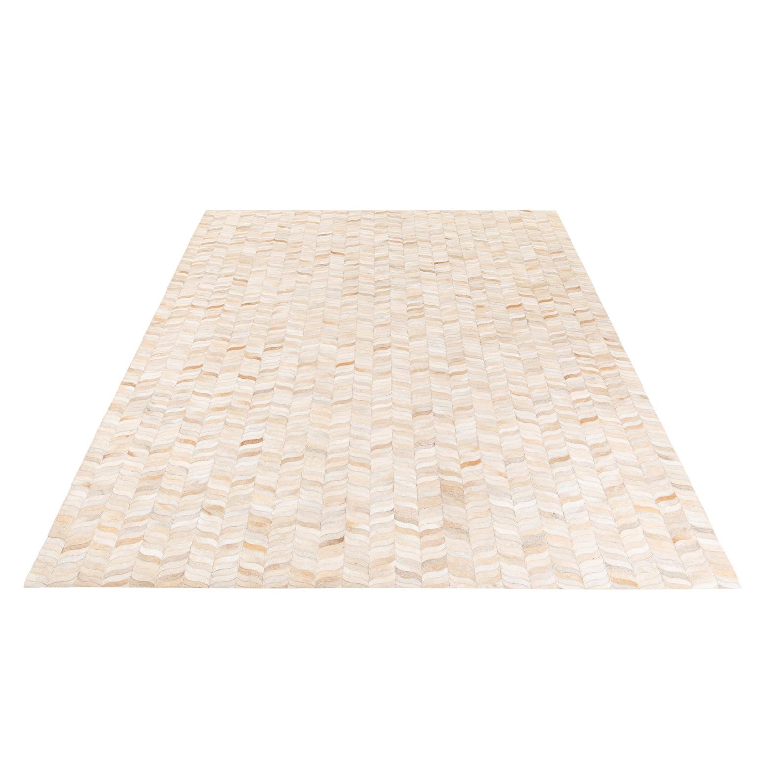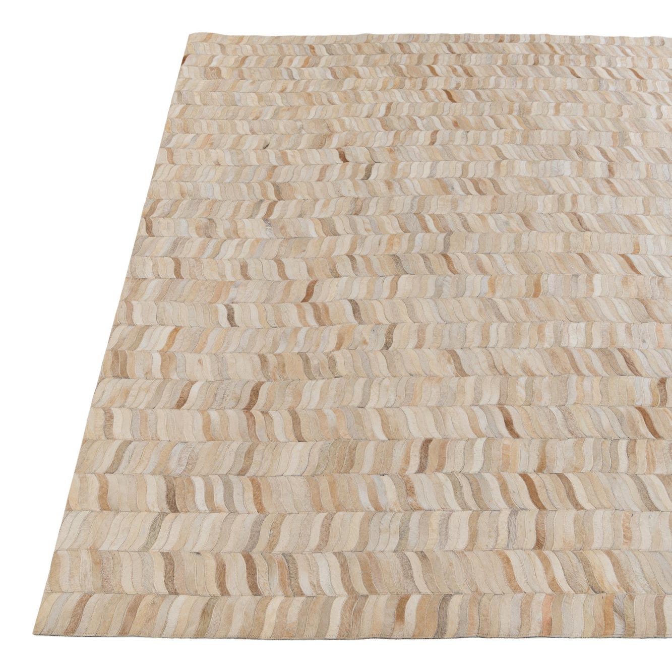 A 7x10 rectangular Cowhide Stocks rug featuring a modern chevron pattern in varying shades of brown, tan, and cream.