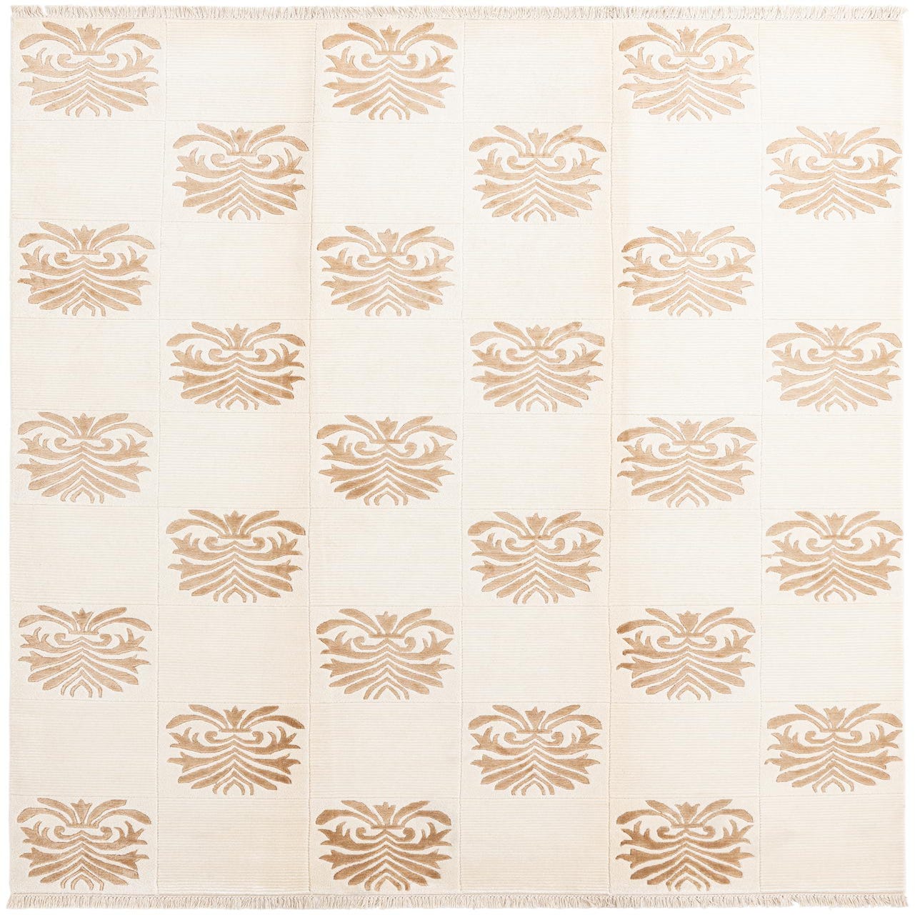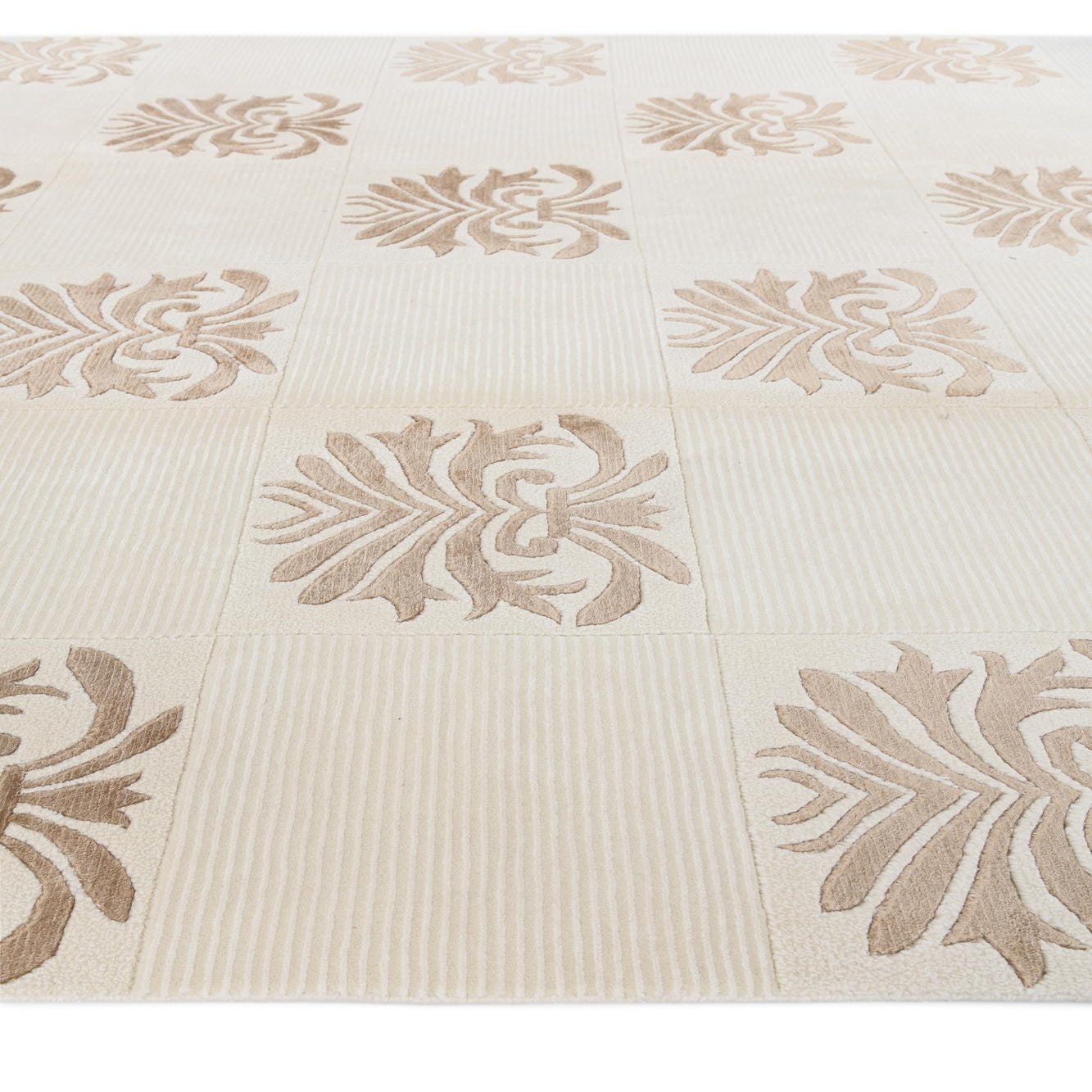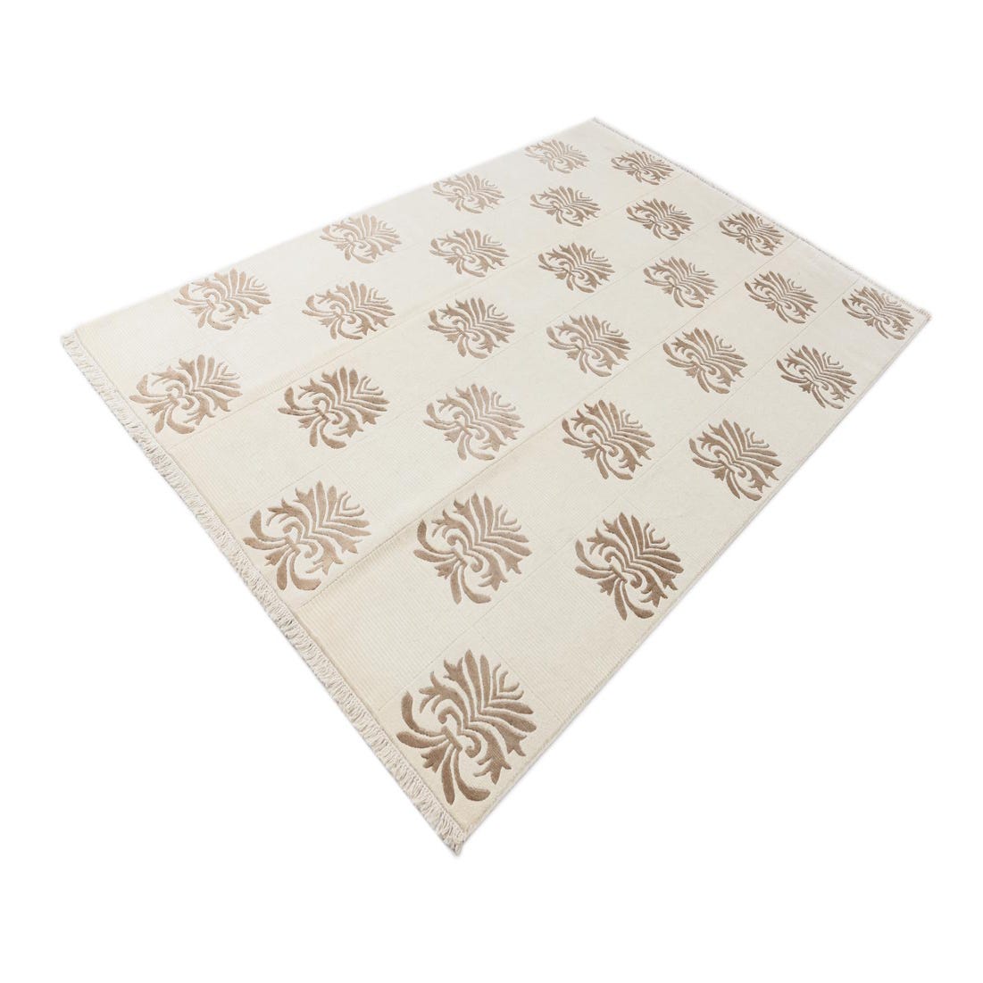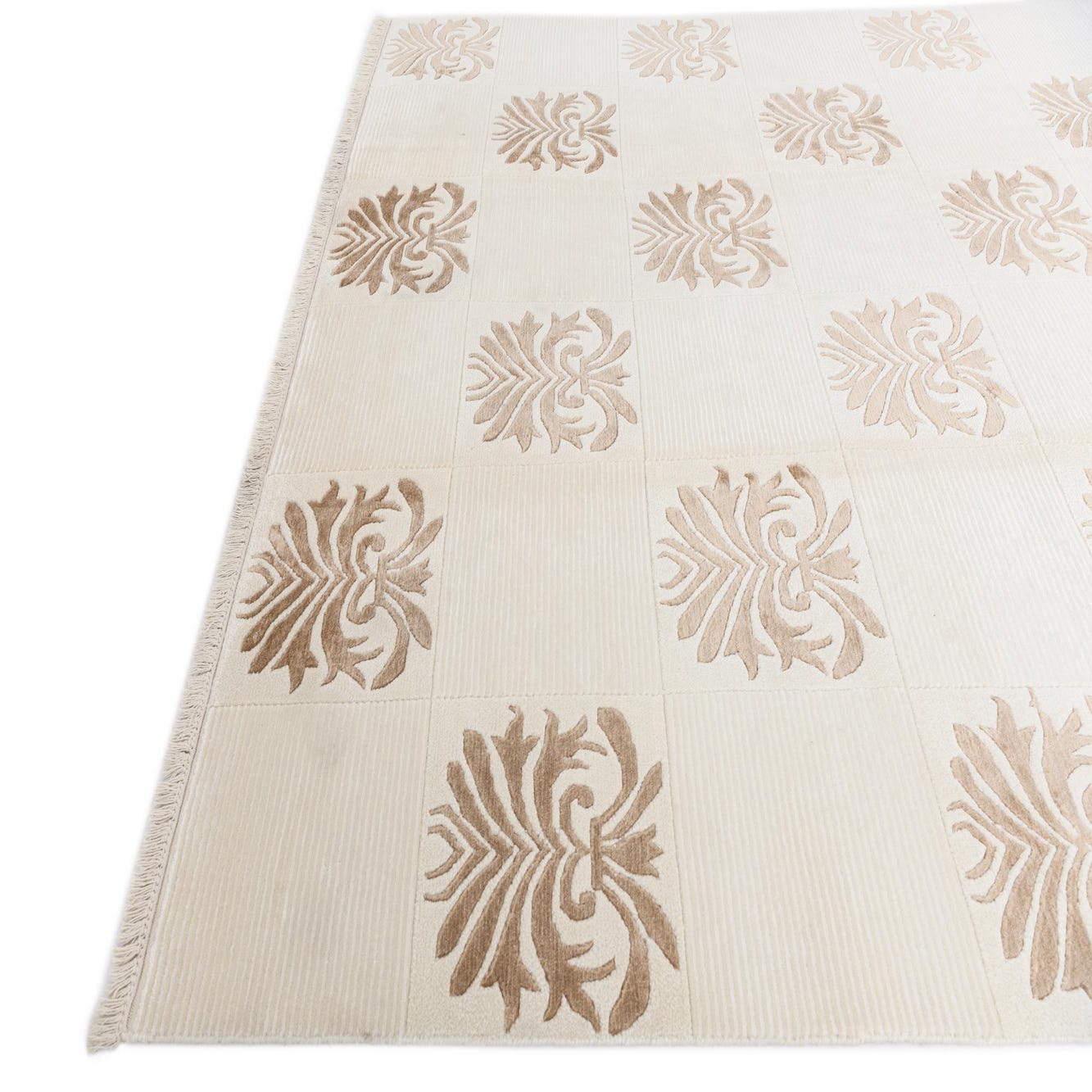 The Darya Collection offers a hand-knotted 100% wool rug in a generous 7x10 size, adding a touch of artisanal craftsmanship to any space. This rug showcases a pattern of ornamental motifs in a grid-like distribution, employing a restrained palette of beige, cream, and light brown that delivers a soothing aesthetic. The background color is a warm beige that serves as a versatile base for the intricate designs.