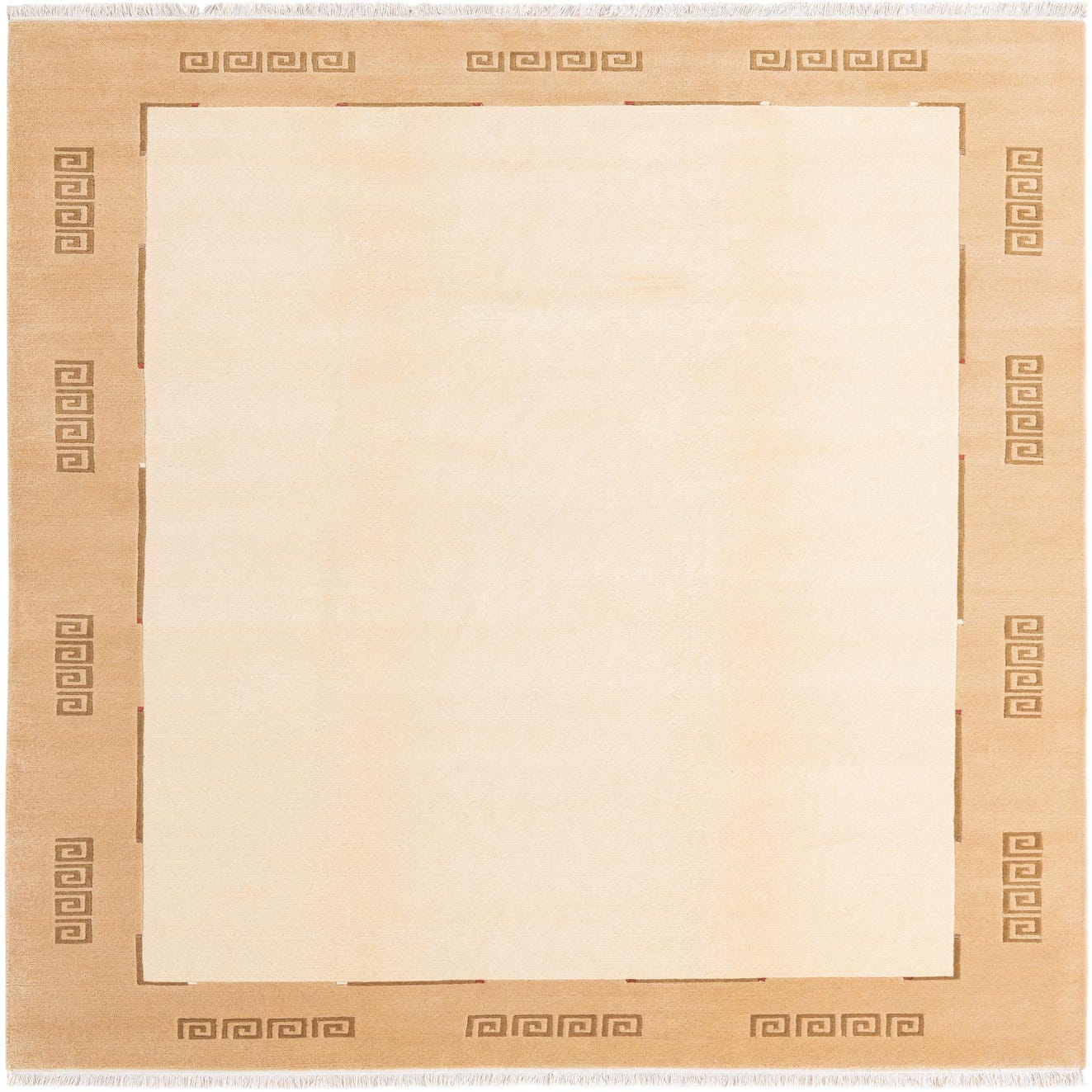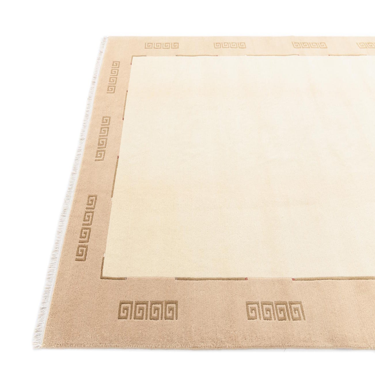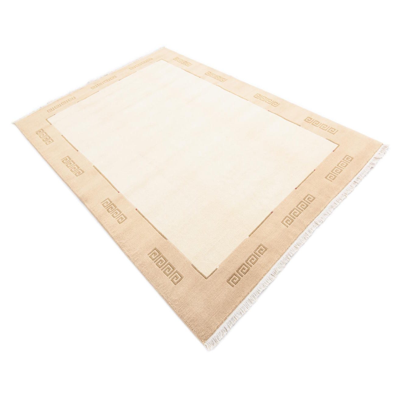 A 7x10 rectangular Darya rug in shades of brown and ivory, featuring a modern Greek key border pattern.