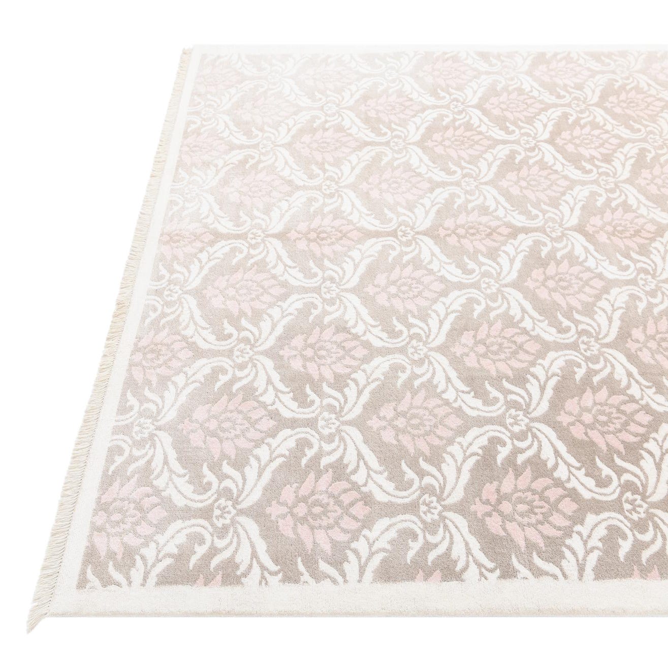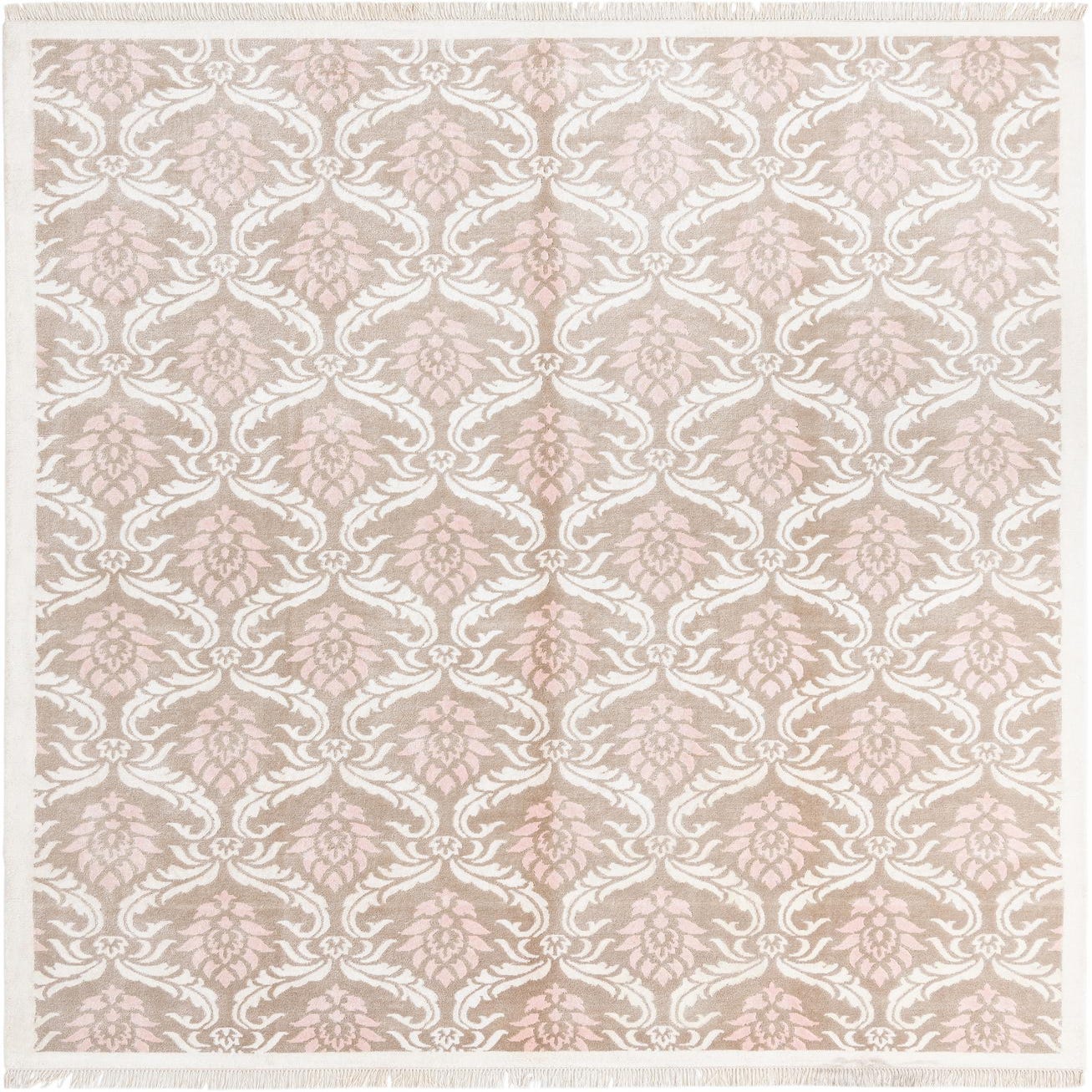 A 7x10 rectangular Darya rug with a modern damask pattern in brown, ivory, and light pink.