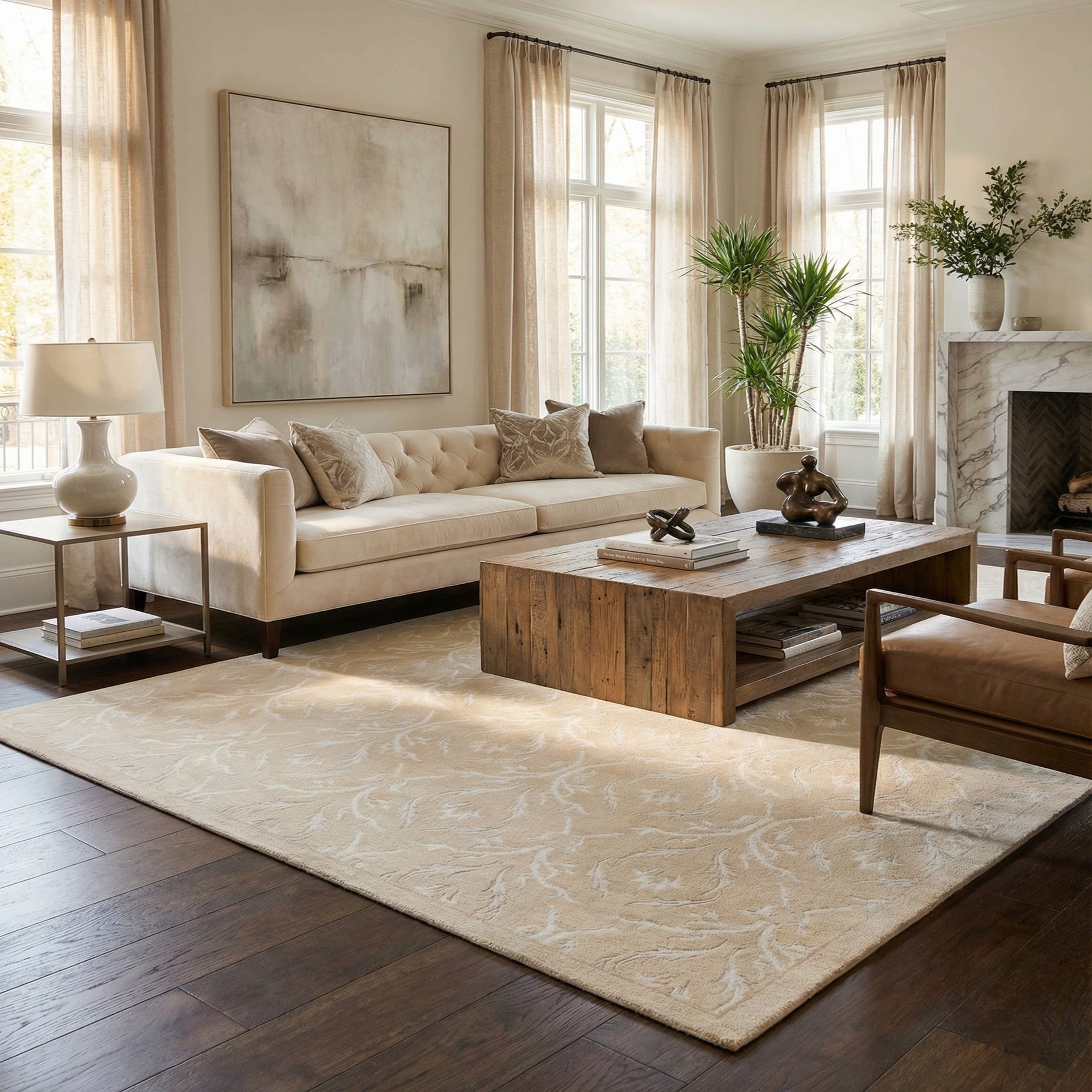 Primary color is Beige. Colors in this rug include: Beige, Ivory.