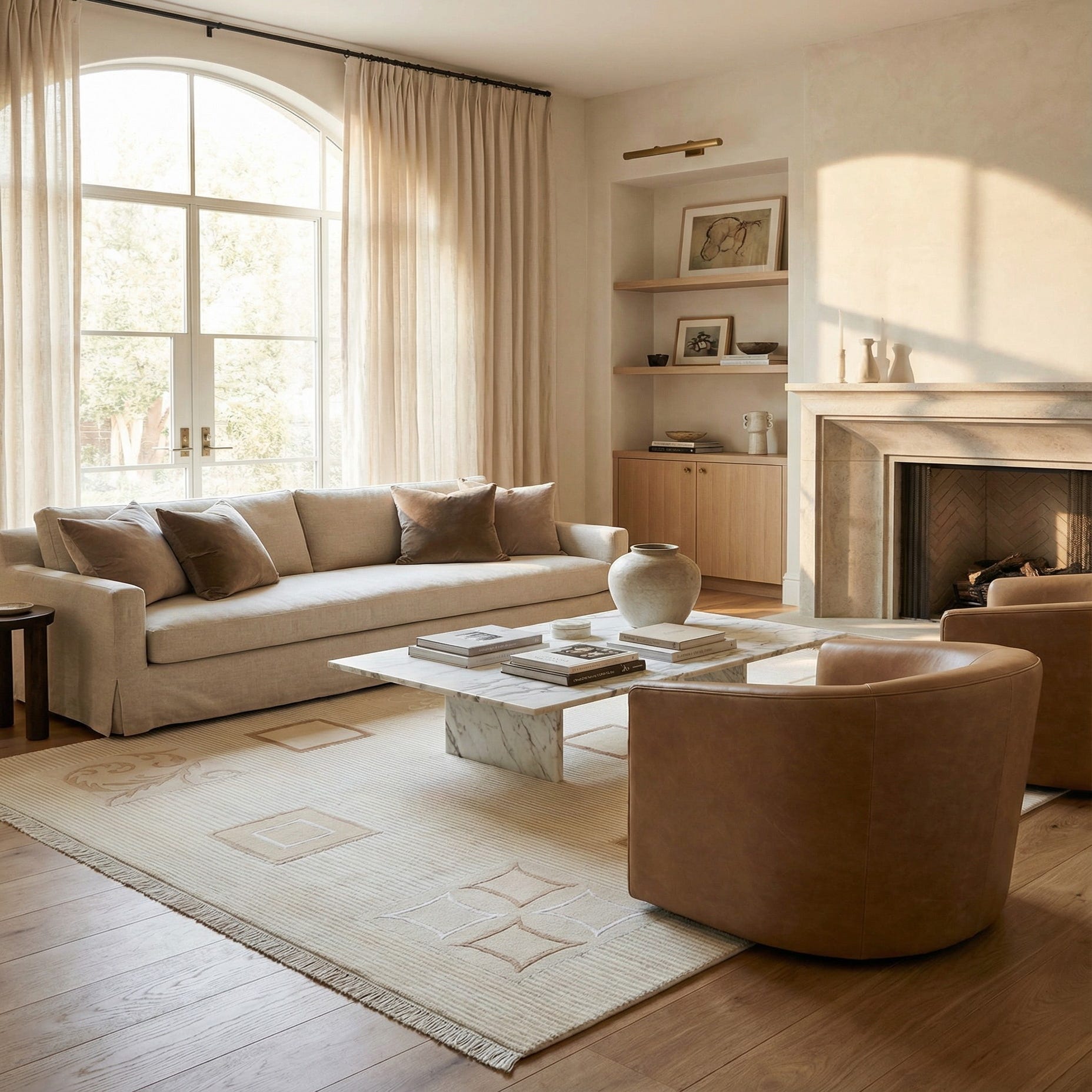 The rug's muted palette and sophisticated pattern create a versatile piece suitable for a variety of interior design scenarios. It pairs seamlessly with contemporary furnishings in a minimalist setting, adding a layer of warmth without overwhelming the space. Traditional interiors would benefit from this rug's classic motifs, where it could serve as a refined anchor in a living room, dining area, or master suite. The Darya rug's understated elegance also makes it an ideal choice for professional settings such as executive offices or boutique hotels seeking an ambiance of quiet luxury.