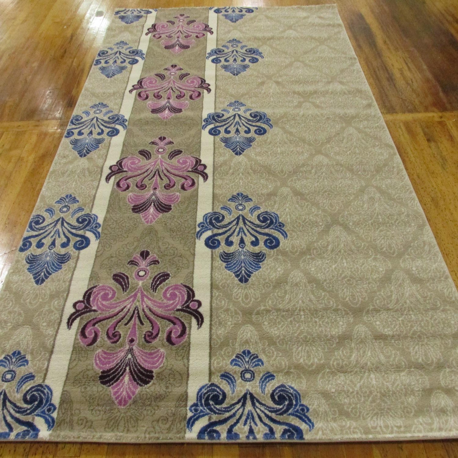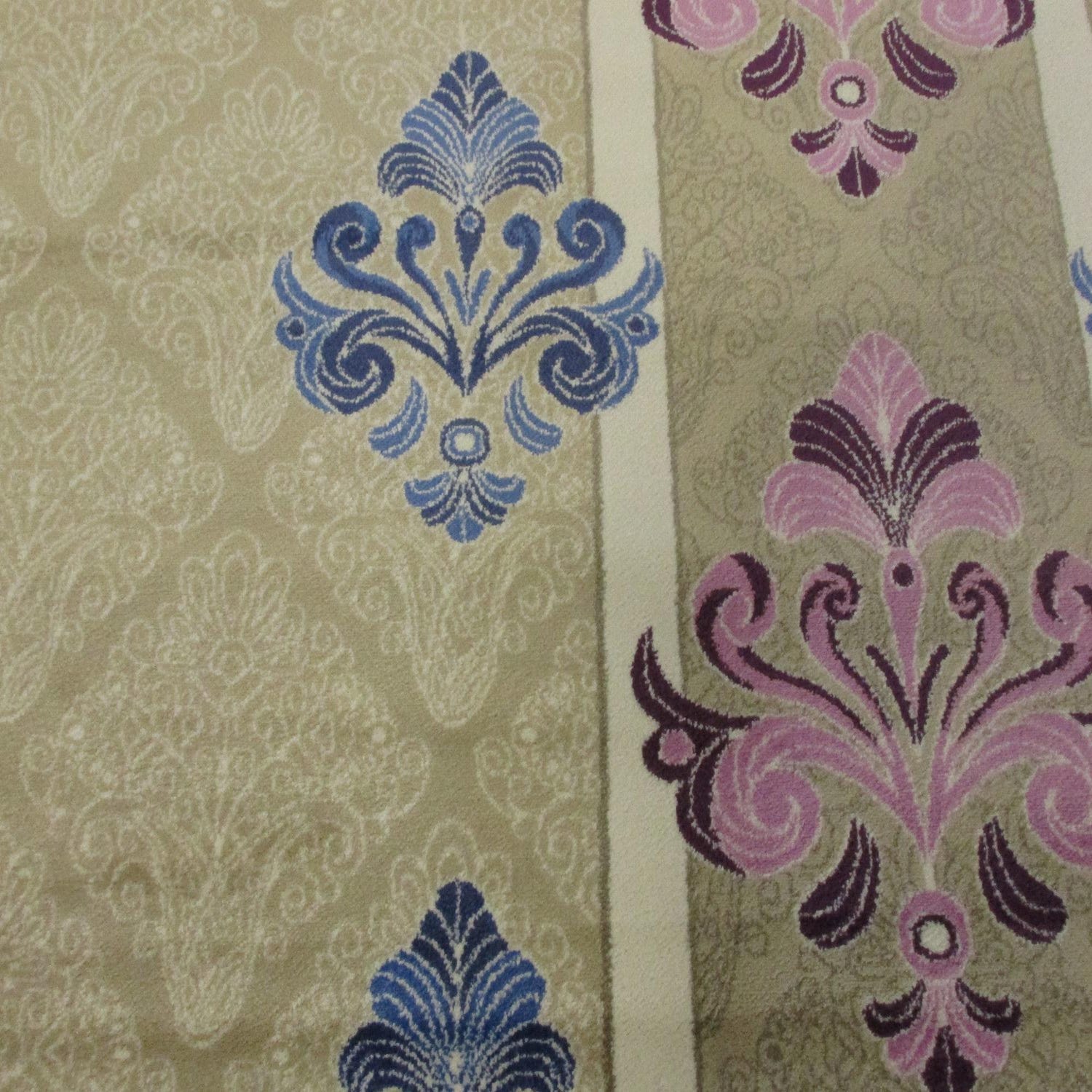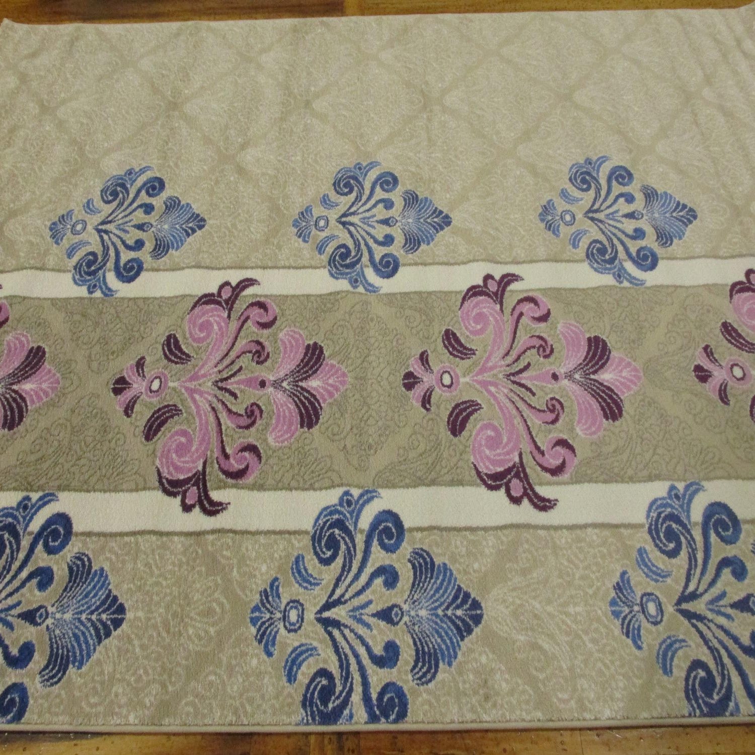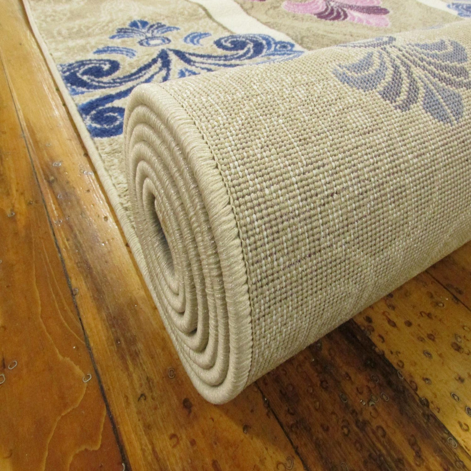 Primary color is Beige. Colors in this rug include: Beige, Blue, Ivory, Navy Blue, Purple, Pink.