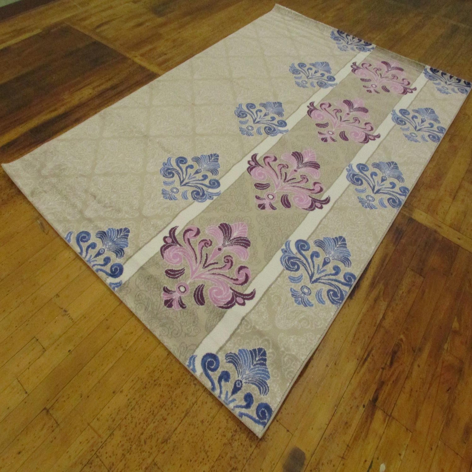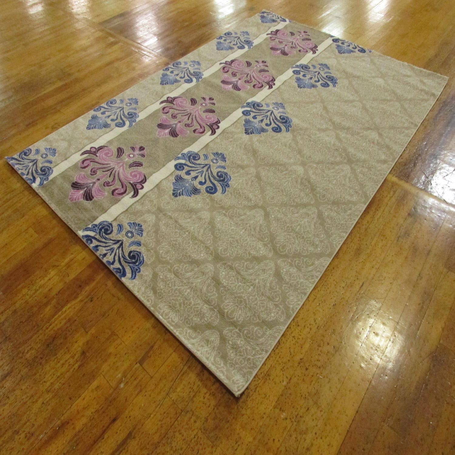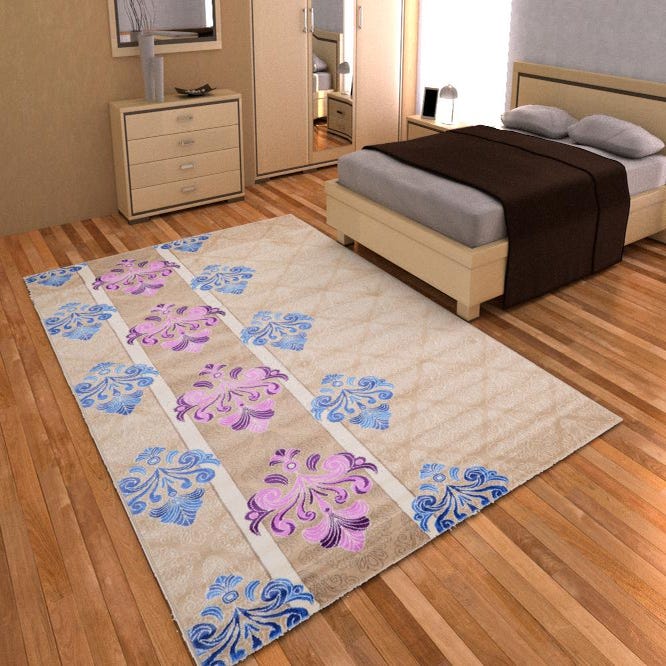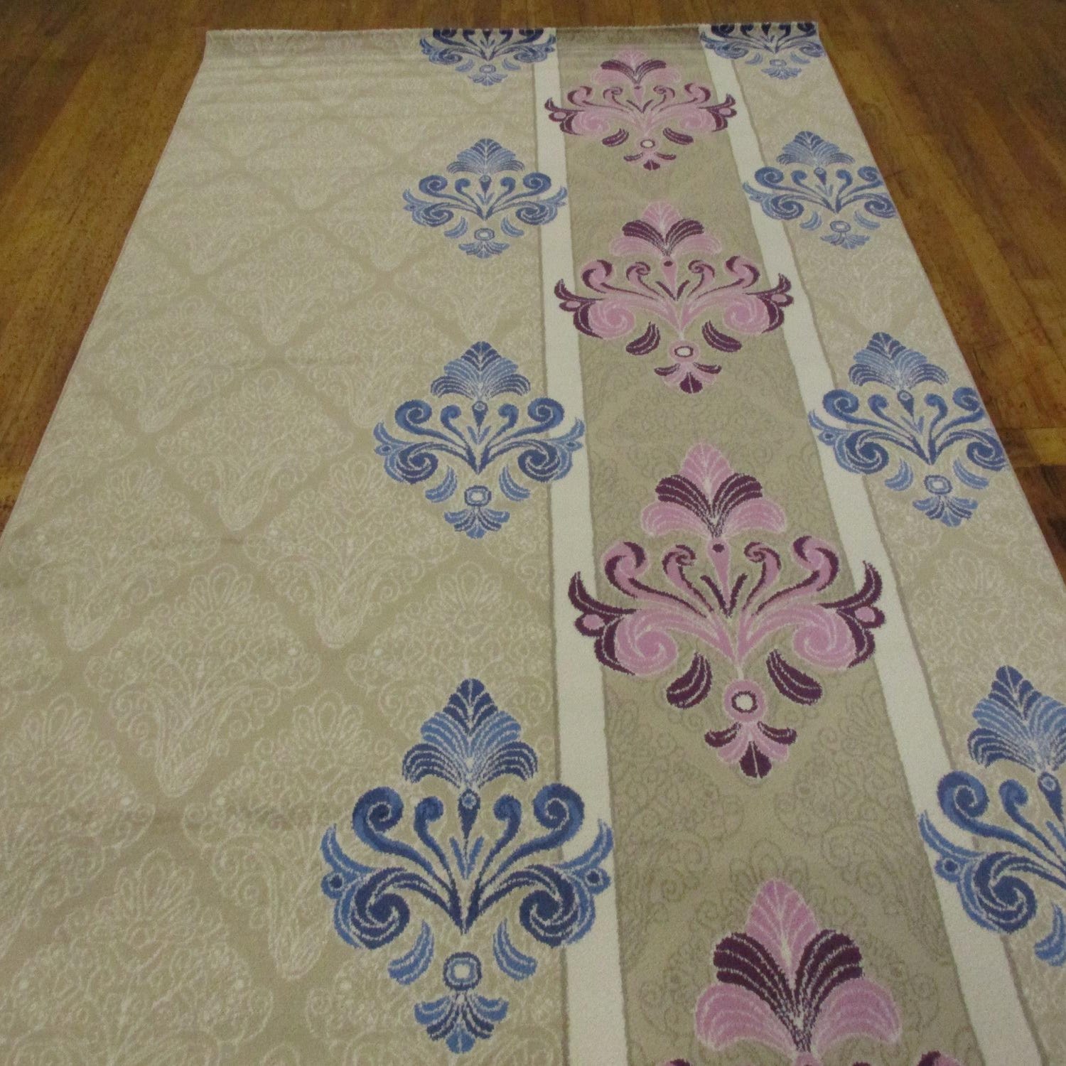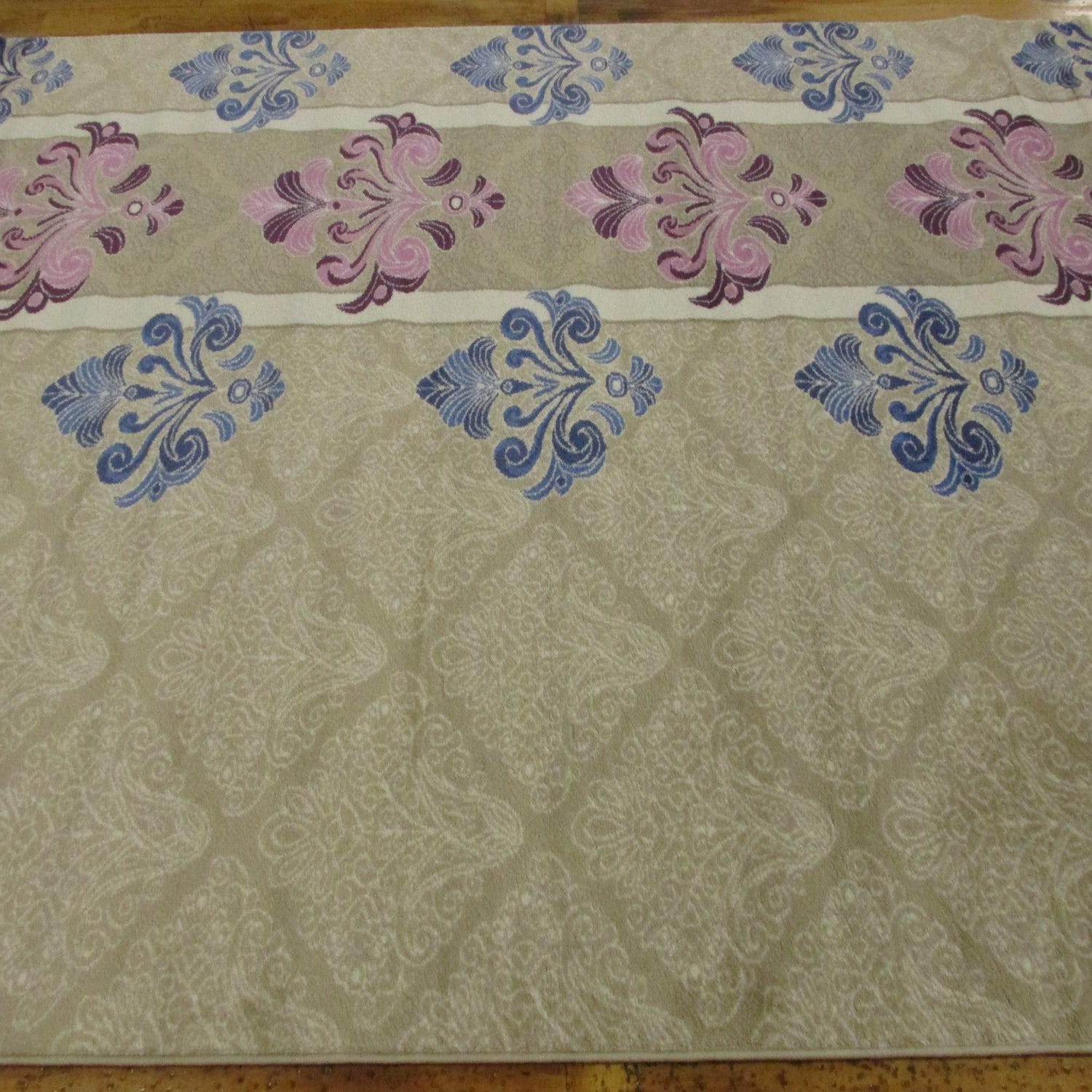 Primary color is Beige. Colors in this rug include: Beige, Blue, Ivory, Navy Blue, Purple, Pink.