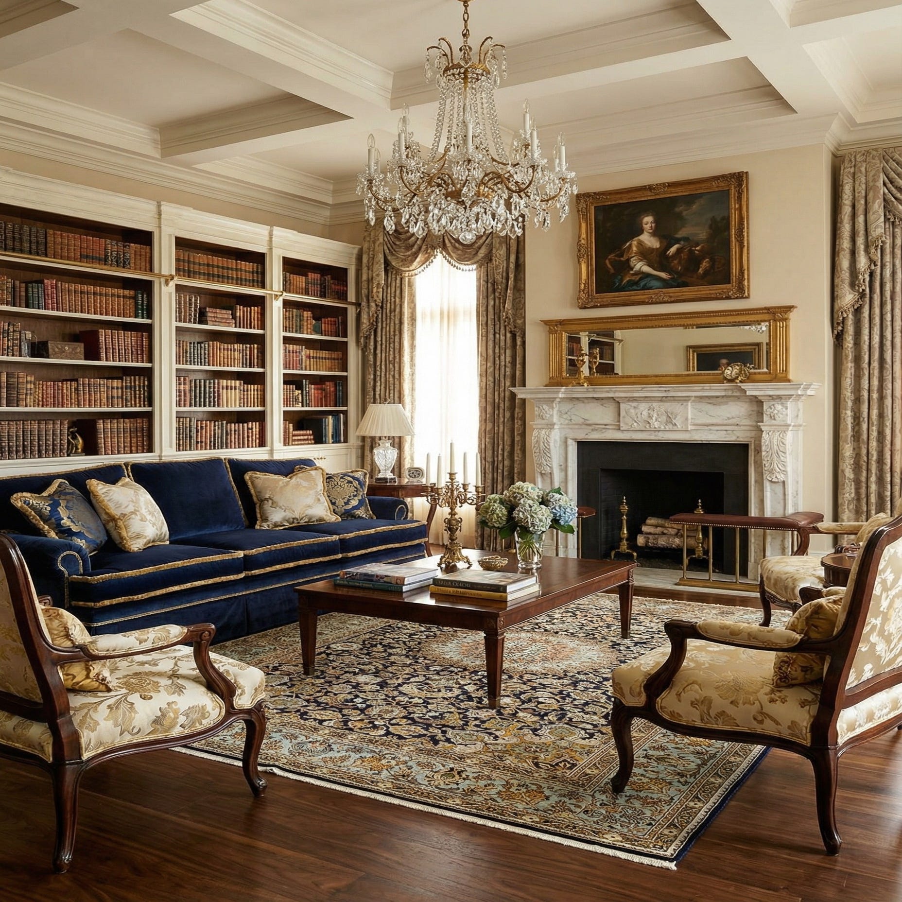 The rug's classic design would be the focal point in a traditional living room, library, or formal dining area. It could also complement an eclectic decor, bridging between old-world charm and modern touches. For a sophisticated office or study, the rug's intricate patterns and distinguished color scheme would create an atmosphere of elegance and focus.
