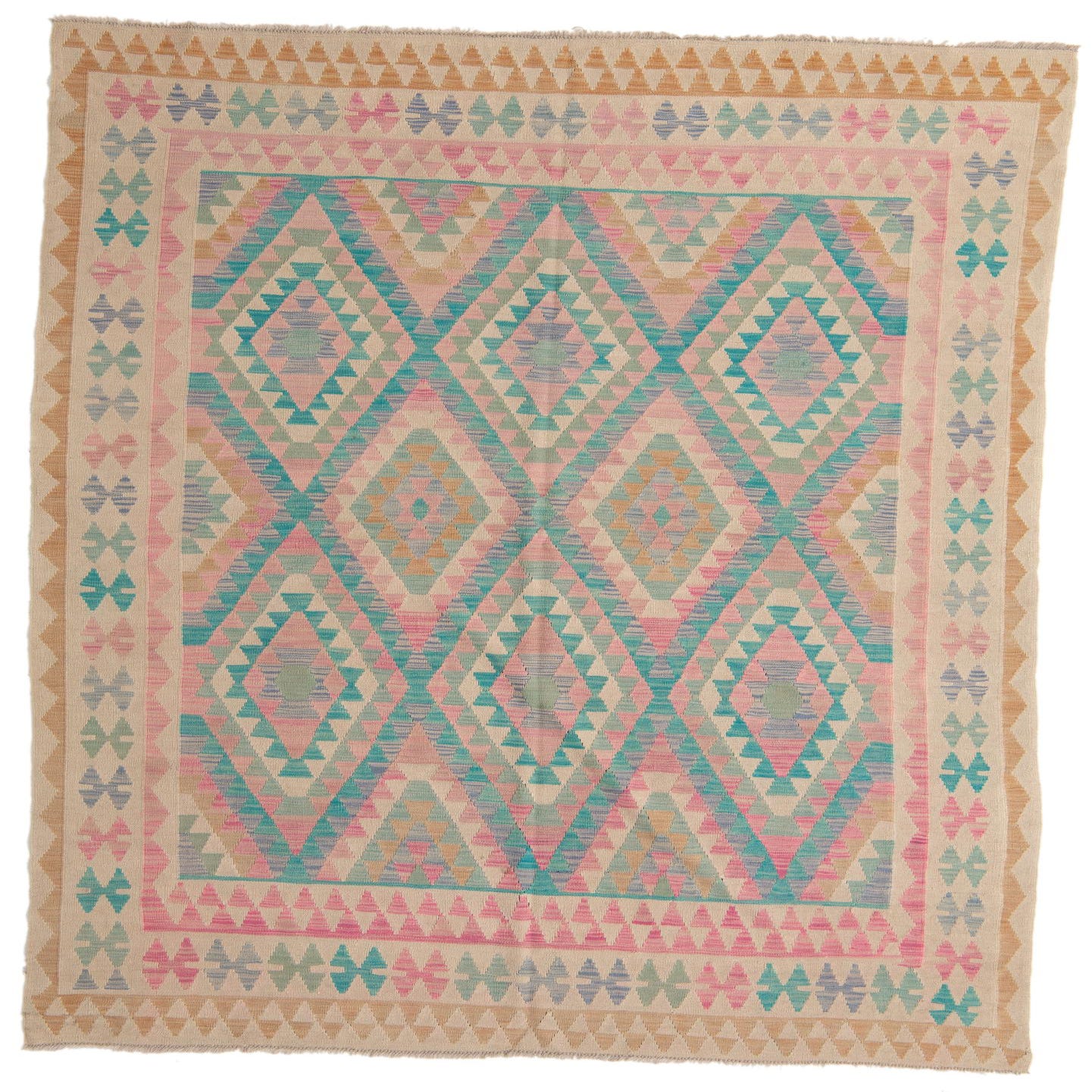 6' 9 x 9' 4 Hand Woven Kilim Maymana Wool Rug