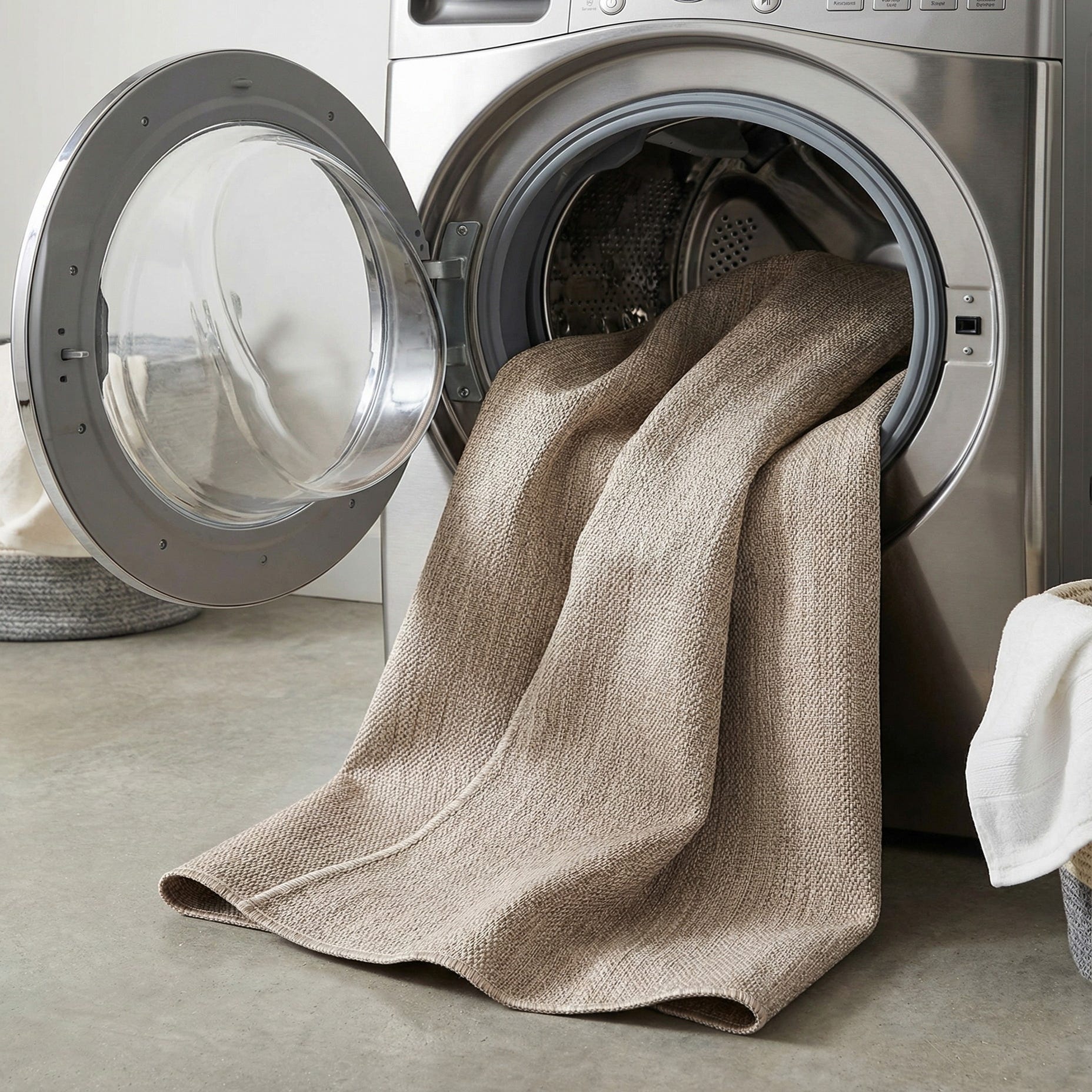 This rug works well as a foundation in covered outdoor living spaces, sunrooms, entryways, or living and dining areas that favor a restrained palette. Pair it with natural wood or rattan furniture and linen textiles for a relaxed coastal look, with matte metal accents for a modern minimalist scheme, or layer it under leather seating and textured throws for a warm, transitional interior.