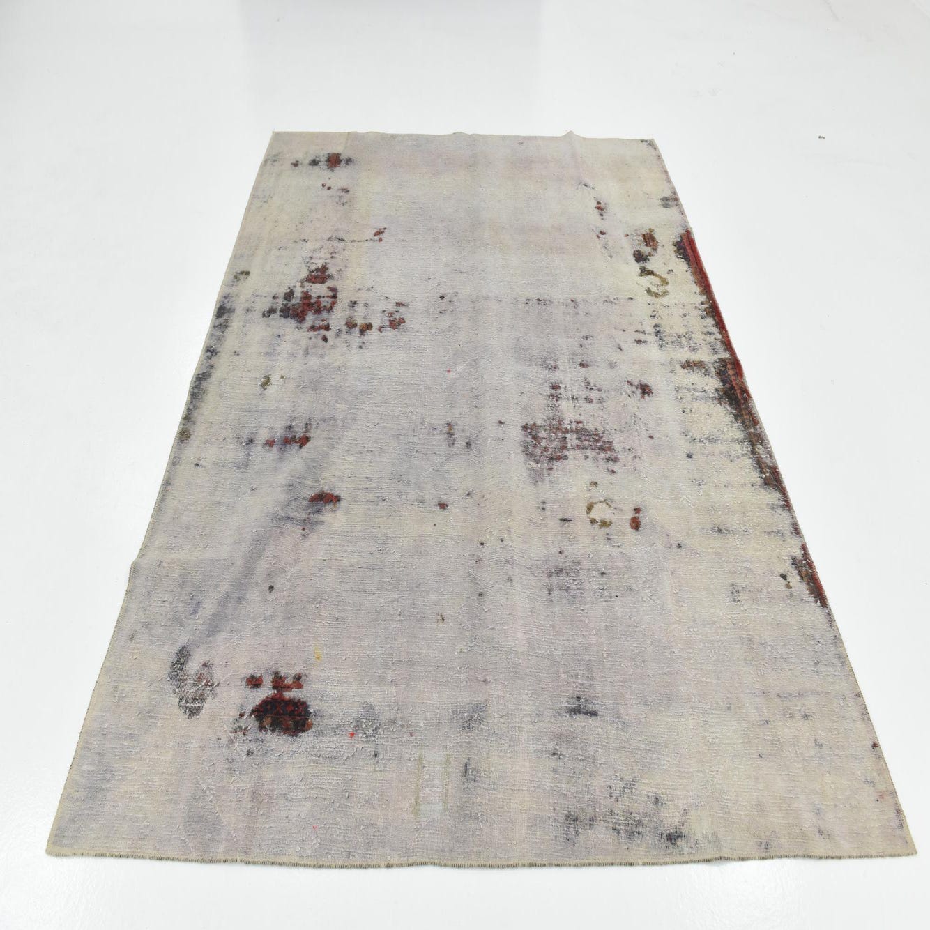 This Persian Ultra Vintage rug is an antique Persian Rug that has been washed, over-dyed, and then shaved down to a low pile. Look at the detail pictures to fully appreciate the uniqueness of this piece.