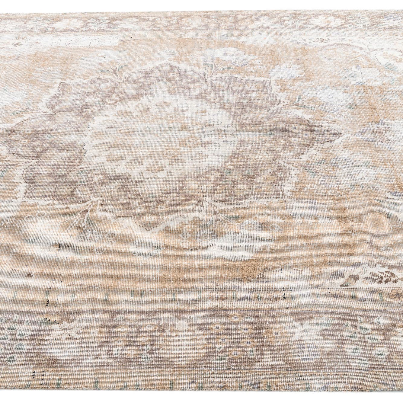 A 7x10 rectangular Ultra Vintage wool rug in browns, tans, and ivories, featuring a faded Persian medallion pattern.